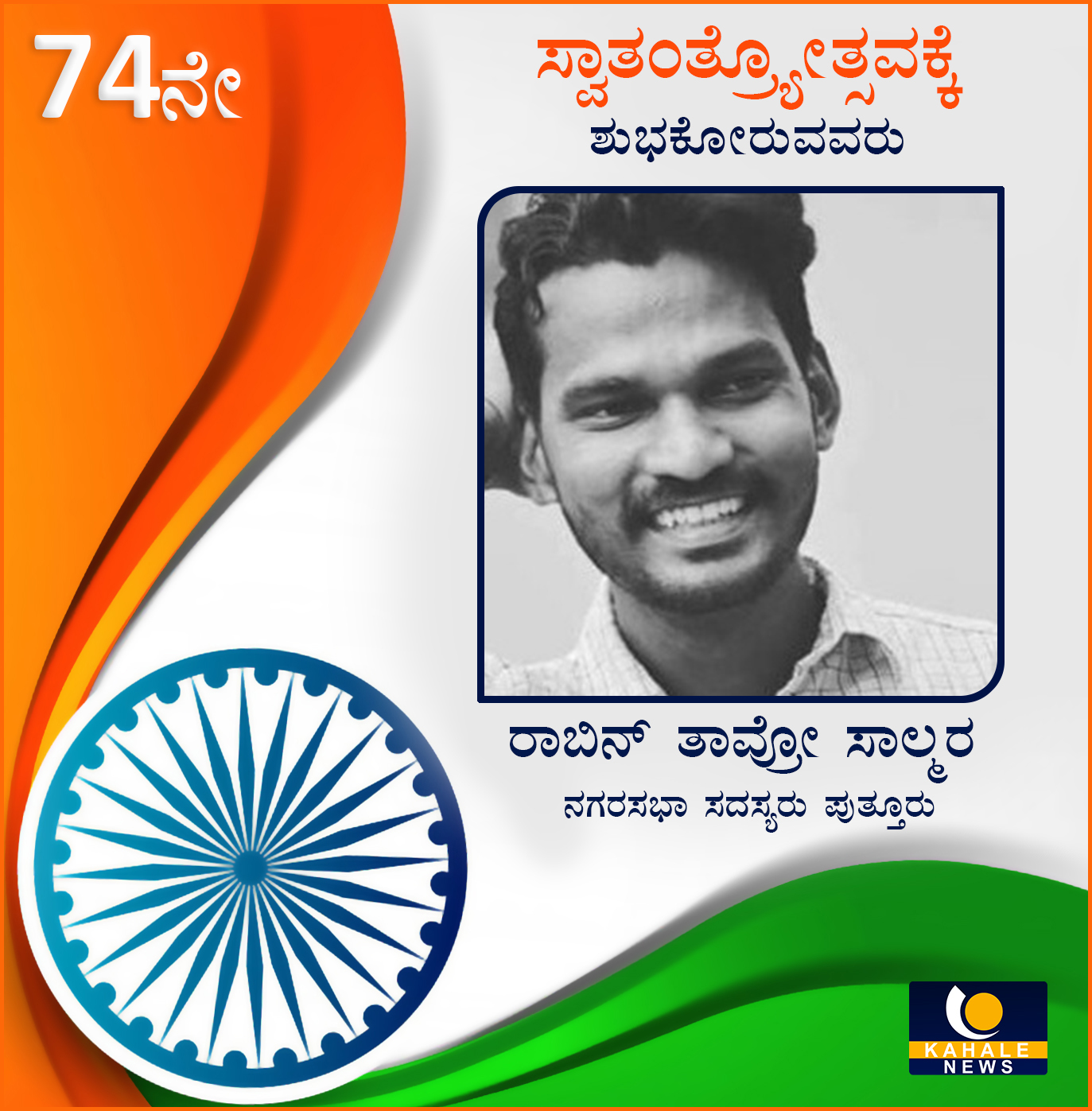 ನಾಡಿನ ಸಮಸ್ತ ಜನತೆಗೆ 74ನೇ ಸ್ವಾತಂತ್ರ್ಯೋತ್ಸವದ ಶುಭಾಶಯಗಳು ! ರಾಬಿನ್ ತಾವ್ರೋ ಸಾಲ್ಮರ -ಕಹಳೆ ನ್ಯೂಸ್