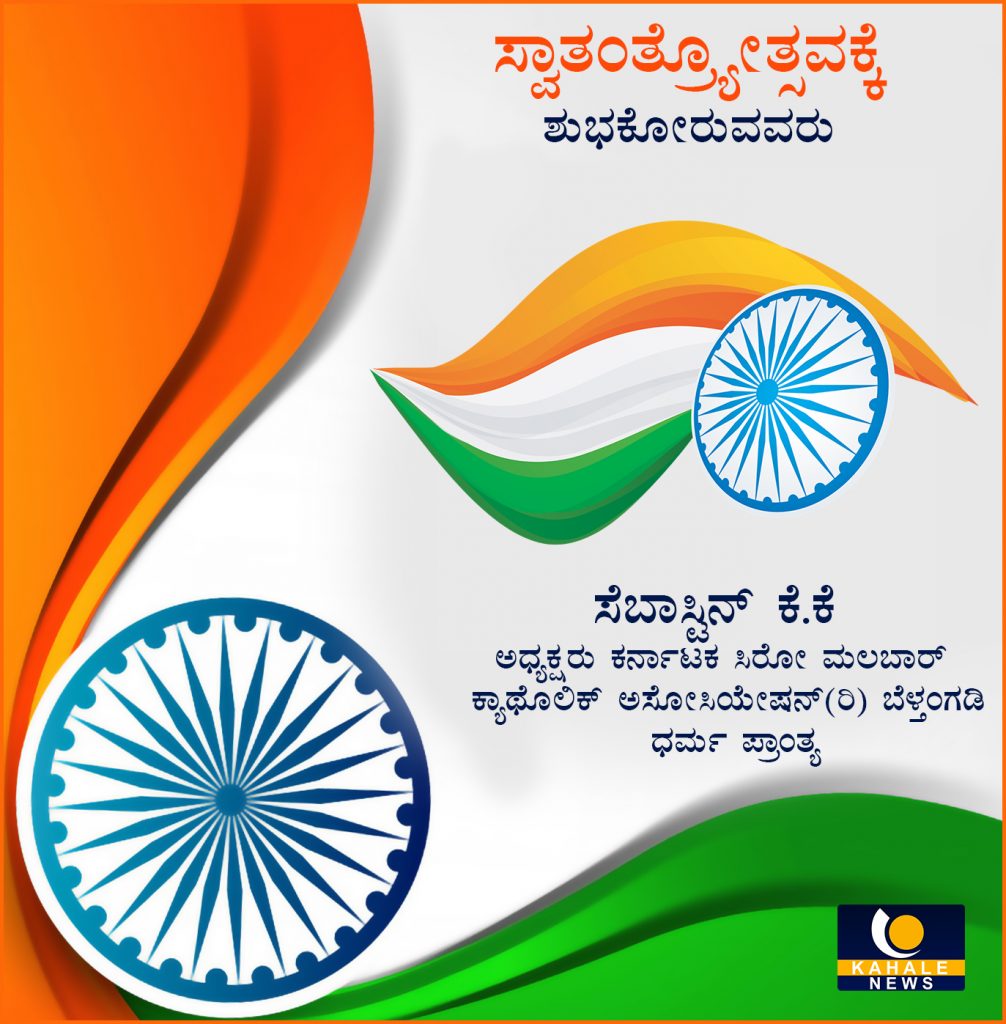 ನಾಡಿನ ಸಮಸ್ತ ಜನತೆಗೆ 74ನೇ ಸ್ವಾತಂತ್ರ್ಯೋತ್ಸವದ ಶುಭಾಶಯಗಳು ! ಸೆಬಾಸ್ಟಿನ್ ಕೆ.ಕೆ- ಕಹಳೆ ನ್ಯೂಸ್