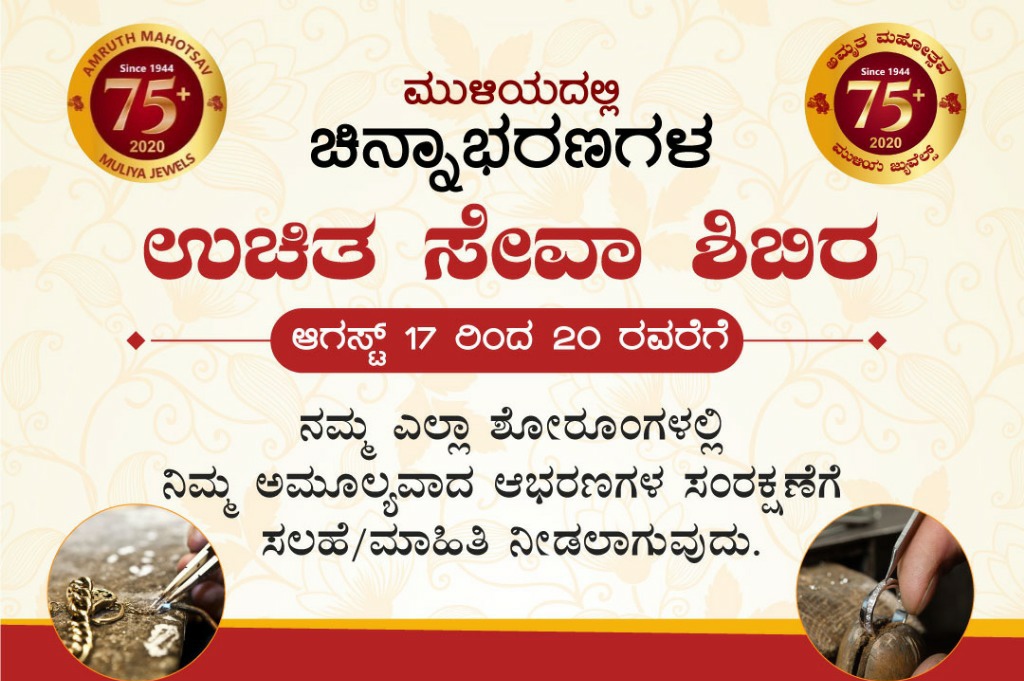ಚಿನ್ನಾಭರಣ ಪ್ರೀಯರಿಗೆ ಗುಡ್ ನ್ಯೂಸ್ ; ಅಗಸ್ಟ್ 17 ರಿಂದ 20ರವರೆಗೆ ಮುಳಿಯ ಜುವೆಲ್ಸ್ ನಲ್ಲಿ ಚಿನ್ನಾಭರಣಗಳ ಉಚಿತ ಸೇವಾ ಶಿಬಿರ – ಕಹಳೆ ನ್ಯೂಸ್
