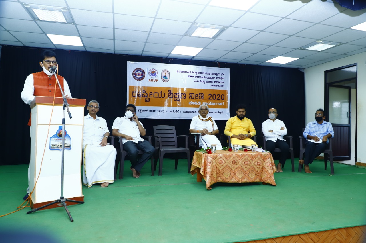 ಕಾರ್ಯಕ್ರಮವನ್ನು ಉದ್ಘಾಟಿಸಿ ಮಾತನಾಡಿದ ಮಂಗಳೂರು ವಿಶ್ವವಿದ್ಯಾಲಯದ ಕುಲಪತಿ ಡಾ. ಪಿ. ಎಸ್. ಯಡಪಡಿತ್ತಾಯ “ಶಿಕ್ಷಣದಲ್ಲಿ ಭಾರತೀಯತೆಯನ್ನು ಮತ್ತೊಮ್ಮೆ ತರುವ ನಿಟ್ಟಿನಲ್ಲಿ ಕೇಂದ್ರ ಸರ್ಕಾರದ ಮಹತ್ತರವಾದ ನೀತಿ ಇದಾಗಿದ್ದು, ಮಗುವಿನಲ್ಲಿ ಗುಣಾತ್ಮಕತೆ ಹಾಗೂ ರಾಷ್ಟ್ರೀಯತೆಯನ್ನು ಬೆಳೆಸುವ ನಿರ್ಧಿಷ್ಟ ಗುರಿಯನ್ನು ಹೊಂದಿರುತ್ತದೆ. ‘ಯಾಕೆ’ ಎನ್ನುವ ಪ್ರಶ್ನಾರ್ಥಕ ಮನೋಭಾವಕ್ಕಿಂತಲೂ ‘ಹೇಗೆ ಅಲೋಚಿಸಬೇಕು’ ಎಂಬ ಕ್ರೀಯಾತ್ಮಕ ಚಿಂತನೆಯನ್ನು ಬಾಲ್ಯದಿಂದಲೇ ಬೆಳೆಸಲಾಗುತ್ತದೆ. ಭಾರತೀಯರಾದ ನಾವೆಲ್ಲ ಹೆಮ್ಮೆ ಮತ್ತು ಗರ್ವದಿಂದ ಈ ನೀತಿಯನ್ನು ಸ್ವೀಕರಿಸಿ ಒಂದಾಗಿ ಕಾರ್ಯನಿರ್ವಹಿಸೋಣ” ಎಂದರು.