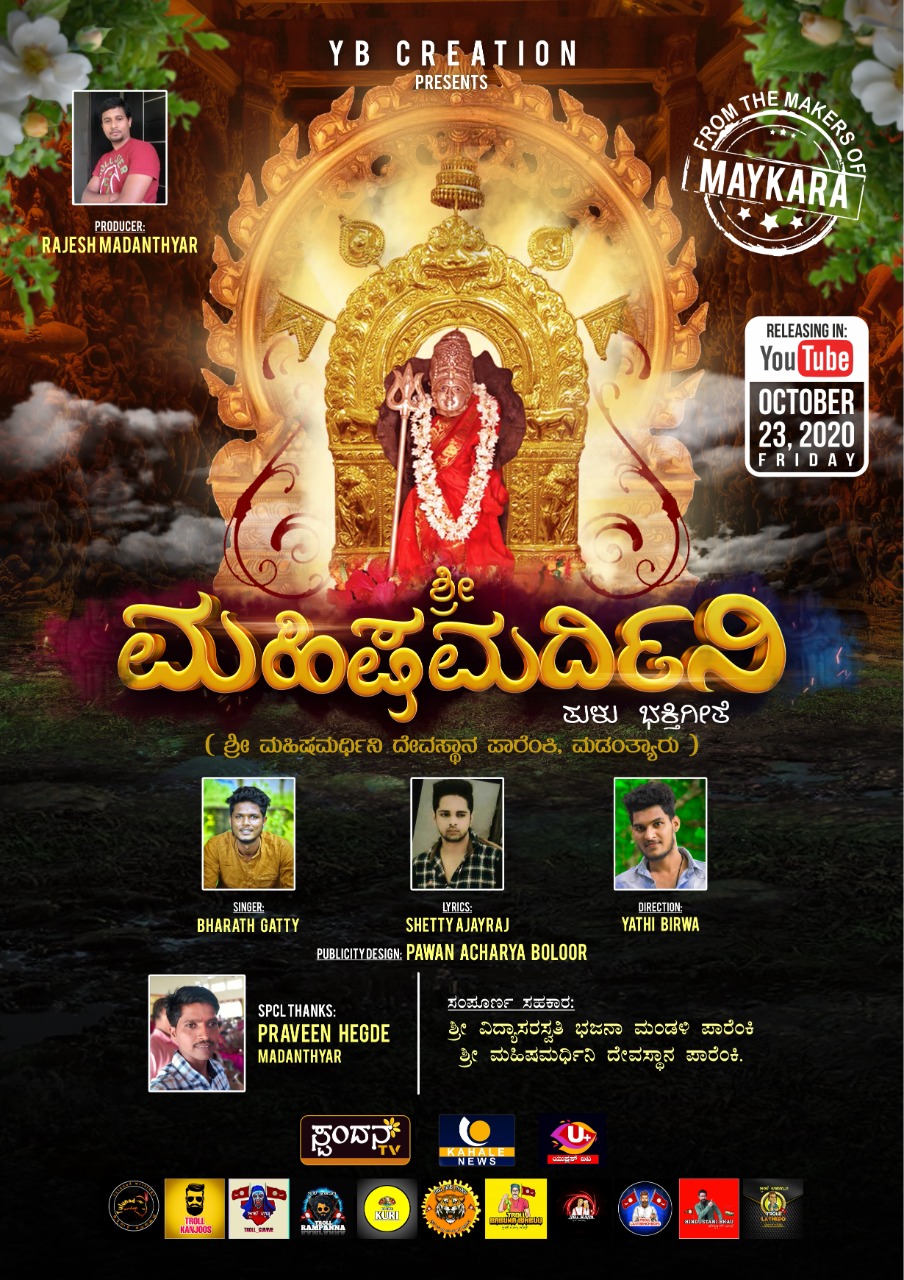 ವೈ.ಬಿ ಕ್ರೀಯೇಷನ್ನ ಮಾಯ್ಕಾರೆ ಟೀಮ್ನಿಂದ ಮೂಡಿಬಂದ ಶ್ರೀ ಮಹಿಷಾ ಮರ್ದಿನಿ ತುಳು ಭಕ್ತಿಗೀತೆ ಇಂದು ಸಂಜೆ 6 ಗಂಟೆಗೆ ರಿಲೀಸ್-ಕಹಳೆ ನ್ಯೂಸ್