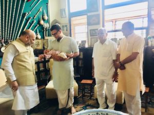 ಭೇಟಿ ವೇಳೆ ಯದುವೀರ್ ಪುತ್ರ ಆದ್ಯವೀರ್ ನನ್ನು ಶಾ ಮುದ್ದಾಡಿದರು. ರಾಜಮನೆತನದ ಭೇಟಿ ವೇಳೆ ಬಿಜೆಪಿ ರಾಜ್ಯಾಧ್ಯಕ್ಷ ಬಿಎಸ್ ಯಡಿಯೂರಪ್ಪ, ಕೇಂದ್ರ ಸಚಿವ ಅನಂತಕುಮಾರ್, ಸಂಸದ ಪ್ರತಾಪ್ ಸಿಂಹ ಉಪಸ್ಥಿತರಿದ್ದರು.