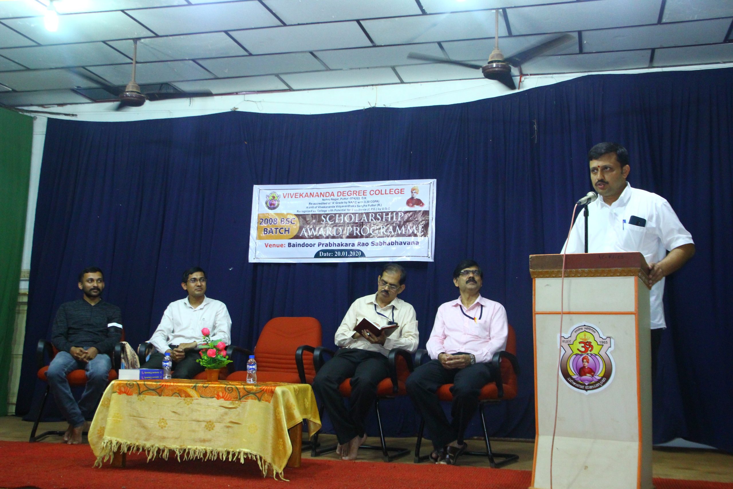 ಅವರು ಇಲ್ಲಿನ ವಿವೇಕಾನಂದ ಮಹಾವಿದ್ಯಾಲಯ ಮತ್ತು ಐಕ್ಯೂಎಸಿ ಘಟಕದ ಆಶ್ರಯದಲ್ಲಿ ನಡೆದ ಹಿರಿಯ ವಿದ್ಯಾರ್ಥಿಗಳ ದತ್ತಿನಿಧಿ ಕಾರ್ಯಕ್ರಮವನ್ನು ಉದ್ಘಾಟಿಸಿ ಬುಧವಾರ ಮಾತಾಡಿದರು.ವೇದ ಮತ್ತು ಉಪನಿಷತ್ತ್ಗಳಲ್ಲಿ ಹೇಳಿರುವಂತೆ ವಿದ್ಯಾದಾನ ಅತ್ಯಂತ ಶ್ರೇಷ್ಠವಾಗಿದ್ದು. ಸಂಪಾದಿಸಿದ ಸ್ವಲ್ಪ ಹಣವನ್ನು ದಾನ ಮಾಡಿದರೆ ಸಮಾಜದ ಅಭಿವೃದ್ಧಿ ಸಾಧ್ಯ ಎಂದು ಹೇಳಿದರು. ಕಾರ್ಯಕ್ರಮದ ಅಧ್ಯಕ್ಷತೆಯನ್ನು ವಹಿಸಿದ ವಿವೇಕಾನಂದ ಮಹಾವಿದ್ಯಾಲಯದ ಆಡಳಿತ ಮಂಡಳಿ ಸಂಚಾಲಕ ಮುರುಳಿಕೃಷ್ಣ ಕೆ. ಎನ್. ಮಾತನಾಡಿ, ವಿದ್ಯೆಯಿಂದ ವಿನಯ ಲಭಿಸುತ್ತದೆ. ಶಿಕ್ಷಣ ಎನ್ನುವುದು ಜೀವನದ ಒಂದು ಭಾಗವಲ್ಲದೆ, ಜೊತೆಗೆ ಕೈಲಾದಷ್ಟು ದಾನಧರ್ಮವನ್ನು ನೀಡಬೇಕು ಎಂದು ಈ ಸಂದರ್ಭದಲ್ಲಿ ನುಡಿದರು. ಕಾರ್ಯಕ್ರಮದಲ್ಲಿ ಮಹಾವಿದ್ಯಾಲಯದ ಪ್ರಾಂಶುಪಾಲ ಪ್ರೊ. ವಿ.ಜಿ ಭಟ್, ಹಿರಿಯ ವಿದ್ಯಾರ್ಥಿ ಶ್ರೀವತ್ಸ ಉಪಸ್ಥಿತರಿದ್ದರು. ಈ ಸಂದರ್ಭ ಆಯ್ದ ವಿದ್ಯಾರ್ಥಿಗಳಿಗೆ, ವಿದ್ಯಾರ್ಥಿ ವೇತನವನ್ನು ವಿತರಿಸಲಾಯಿತು. ಉಪನ್ಯಾಸಕ ಶಿವಪ್ರಸಾದ್ ಕೆ.ಎಸ್. ಕಾರ್ಯಕ್ರಮ ನಿರ್ವಹಿಸಿದರು.