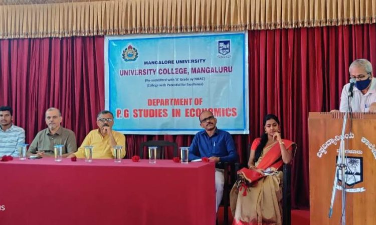 ಅವರು ಫೆಬ್ರವರಿ 11 ರಂದು ವಿಶ್ವವಿದ್ಯಾನಿಲಯ ಕಾಲೇಜಿನ ಶಿವರಾಮ ಕಾರಂತ ಸಭಾಭವನದಲ್ಲಿ ನಡೆದ ಸ್ನಾತಕೋತ್ತರ ಅರ್ಥಶಾಸ್ತ್ರ ವಿಭಾಗದ ಹೊಸ ಬ್ಯಾಚ್ನ ವಿದ್ಯಾರ್ಥಿಗಳ ಸ್ವಾಗತ ಕಾರ್ಯಕ್ರಮದಲ್ಲಿ ಸಂಪನ್ಮೂಲ ವ್ಯಕ್ತಿಯಾಗಿ ಮಾತನಾಡಿದರು. ಪ್ರೋ. ಅಭಿಜಿತ್ ಬ್ಯಾನರ್ಜಿ ಮತ್ತು ಎಸ್ತರ್ ಡಫೋಲ್ಲೀ ವಿರಚಿತ ನೊಬೆಲ್ ಪುರಸ್ಕøತ ಕೃತಿ ʼಪುವರ್ ಎಕನಾಮಿಕ್ಸ್ʼ ಅನ್ನು ಉಲ್ಲೇಖಿಸಿದ ಅವರು, ಜನರಲ್ಲಿ ಜಾಗೃತಿ ಮೂಡಿಸುವುದು ಮತ್ತು ಬಡತನ ನಿವಾರಣೆಯಲ್ಲಿ ಈ ಕೃತಿ ಮುಖ್ಯ ಪಾತ್ರ ವಹಿಸುತ್ತದೆ ಎಂದರು. ಸ್ನಾತಕೋತ್ತರ ಅರ್ಥಶಾಸ್ತ್ರ ವಿಭಾಗದ ಸಂಯೋಜಕ ಡಾ. ಜಯವಂತ ನಾಯಕ್ ಪ್ರಾಸ್ತಾವಿಕವಾಗಿ ಮಾತನಾಡಿ, ಅರ್ಥಶಾಸ್ತ್ರ ಕೃತಿ ಪರಿಚಯ ಮಾಡಿಕೊಳ್ಳುವುದು ಮತ್ತು ಸಾಮಾನ್ಯ ಜ್ಞಾನ ವಿಸ್ತರಿಸಿಕೊಳ್ಳುವುದು ವಿದ್ಯಾರ್ಥಿಗಳಿಗೆ ಅತ್ಯವಶ್ಯ ಎಂದರು. ಈ ಕಾರ್ಯಕ್ರಮದಲ್ಲಿ ಅರ್ಥಶಾಸ್ತ್ರ ಪ್ರಾಧ್ಯಾಪಕರಾದ ಡಾ. ರಾಮಕೃಷ್ಣ ಬಿ ಎಂ, ಶಮಾ ಐ.ಎನ್.ಎಂ. ಮತ್ತು ಆದರ್ಶ್ ಹೆಚ್.ಬಿ., ಕಾಲೇಜಿನ ಪ್ರಾಂಶುಪಾಲರಾದ ಡಾ. ಎ. ಹರೀಶ್ ಉಪಸ್ಥಿತರಿದ್ದರು.
