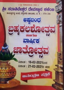 ಬೆಳ್ತಂಗಡಿ: ಫೆಬ್ರವರಿ 16 ರಿಂದ 21 ರವರೆಗೆ ಕಳೆಂಜ ಶ್ರೀ ಸದಾಶಿವೇಶ್ವರ ದೇವಸ್ಥಾನದಲ್ಲಿ ಅಷ್ಟಬಂಧ ಬ್ರಹ್ಮಕಲಶೋತ್ಸವ ಹಾಗೂ ವಾರ್ಷಿಕ ಜಾತ್ರೋತ್ಸವ ವಿವಿಧ ವೈಧಿಕ ತಾಂತ್ರಿಕ ಧಾರ್ಮಿಕ ಕಾರ್ಯಕ್ರಮಗಳೊಂದಿಗೆ ನಡೆಯಲಿದೆ.