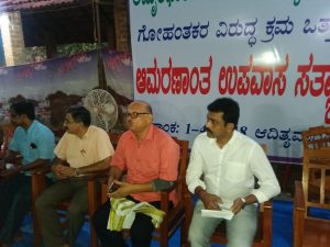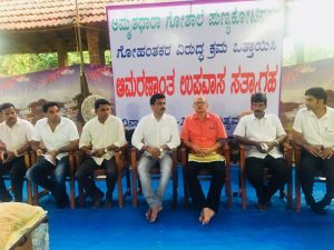 ಅವರು ಅಮೃತಧಾರ ಗೋಶಾಲೆಯಲ್ಲಿ ನಡೆಯುತ್ತಿದ್ದ ಪ್ರತಿಭಟನೆಯಲ್ಲಿ ಭಾಗವಹಿಸಿ ಮತನಾಡಿದರು. ನಾಲ್ಕು ದಿನದಿಂದ ಅಮರಣಂತ ಉಪವಾಸ ಸತ್ಯಾಗ್ರಹದ ಮೂಲಕ ಸಾತ್ವಿಕ ವಿರೋಧವನ್ನು ವ್ಯಕ್ತಪಡಿಸುತ್ತಾ ಇದ್ದರೂ, ಸ್ಥಳೀಯ ‘ಕಾಂಗ್ರೇಸ್’ ನ ಲಜ್ಜೆಗೇಡಿ ಮುಖಂಡರ ದಿವ್ಯ ನಿರ್ಲಕ್ಷ ಇಡೀ ಹಿಂದೂ ಸಮಾಜವನ್ನು ರೊಚ್ಚಿಗೆಬ್ಬಿಸಲು, ದಂಗೆಯೇಳುವಂತೆ ಮಾಡಲು ಪ್ರೇರೇಪಿಸುತ್ತಿದೆ ಅನ್ನುವುದಕ್ಕೆ ಎರಡು ಮಾತಿಲ್ಲ. ಇಲಾಖೆ ನಿರ್ಲಕ್ಷ್ಯ ವಹಿಸಿದರೆ ಗೋಕಳ್ಳರನ್ನು ನಾವು ಅಟ್ಟಾಡುಸುತ್ತೇವೆ ಎಂದು ಈ ಸಂದರ್ಭದಲ್ಲಿ ಅವರು ಹೇಳಿದರು.