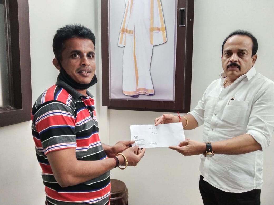 ಪುತ್ತೂರು ತಾಲೂಕಿನ ನಿವಾಸಿ ಹರೀಶ್ ಕುಮಾರ್ ಇವರಿಗೆ ಜಾಗದ ಹಕ್ಕುಪತ್ರ ಪಡೆಯಲು ಆರ್ಥಿಕ ಸಹಾಯದ ಚೆಕ್ಕನ್ನು ನೀಡಿದ ಉದ್ಯಮಿ ,ರೈ ಎಸ್ಟೇಟ್ ಮಾಲಕರಾದ ಅಶೋಕ್ ಕುಮಾರ್ ರೈ-ಕಹಳೆ ನ್ಯೂಸ್