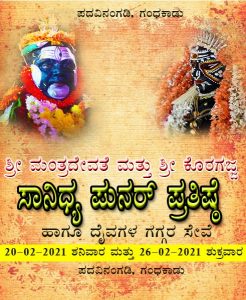 ಪದವಿನಂಗಡಿ ಗಂಧಕಾಡುನಲ್ಲಿ ಶ್ರೀ ಮಂತ್ರದೇವತೆ ಮತ್ತು ಶ್ರೀ ಕೊರಗಜ್ಜ ಸಾನಿಧ್ಯ ಪುನರ್ ಪ್ರತಿಷ್ಠೆ ಹಾಗೂ ದೈವಗಳ ಗಗ್ಗರ ಸೇವೆಯು ನಡೆಯಲಿದೆ.