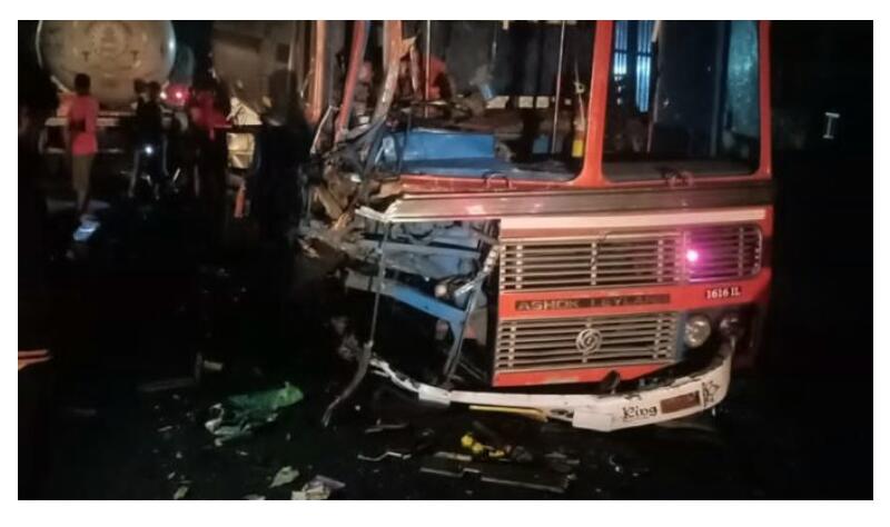 ಮಂಗಳೂರಿನಿಂದ ಗ್ಯಾಸ್ ತುಂಬಿಕೊಂಡು ಬೆಂಗಳೂರಿನತ್ತ ತೆರಳುತ್ತಿದ್ದ ಟ್ಯಾಂಕರ್ ಹಾಗೂ ವಿರುದ್ಧ ದಿಕ್ಕಿನಿಂದ ಬರುತ್ತಿದ್ದ ಡೀಸೆಲ್ನ ಟ್ಯಾಂಕರ್ ನಡುವೆ ಹೊಸಮಜಲು ಸಮೀಪ ಢಿಕ್ಕಿ ಸಂಭವಿಸಿದೆ. ಘಟನೆಯಲ್ಲಿ ಗಾಯಗೊಂಡಿರುವ ಡೀಸೆಲ್ ಟ್ಯಾಂಕರ್ ಚಾಲಕನನ್ನು ಆಸ್ಪತ್ರೆಗೆ ದಾಖಲಿಸಲಾಗಿದ್ದು, ಸ್ಥಳಕ್ಕೆ ನೆಲ್ಯಾಡಿ ಹೊರಠಾಣಾ ಪೊಲೀಸರು ಭೇಟಿ ನೀಡಿ ಪರಿಶೀಲನೆ ನಡೆಸಿದ್ದಾರೆ.