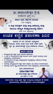 ಬೆಳ್ತಂಗಡಿ : ಶ್ರೀ ಚಾಮುಂಡೇಶ್ವರಿ ಕ್ಷೇತ್ರ ಅರಿಕೋಡಿ ಟ್ರಸ್ಟ್ (ರಿ) ಬೆಳಾಲು ಗ್ರಾಮ, ಬೆಳ್ತಂಗಡಿ ತಾಲೂಕು ಇದರ ನೇತ್ರತ್ವದಲ್ಲಿ ಐ ಮಿತ್ರ ಸುರತ್ಕಲ್ ಮತ್ತು ಜಿಲ್ಲಾ ಆರೋಗ್ಯ ಮತ್ತು ಕುಟುಂಬ ಕಲ್ಯಾಣ ಸೊಸೈಟಿ (ಅಂದತ್ವ ವಿಭಾಗ) ಇದರ ಜಂಟಿ ಆಶ್ರಯದಲ್ಲಿ ಉಚಿತ ಕಣ್ಣಿನ ತಪಾಸಣಾ ಶಿಬಿರ ಮಾರ್ಚ್ 7ರಂದು ಬೆಳಿಗ್ಗೆ 10 ಗಂಟೆಯಿಂದ ಸಂಜೆ 4ರ ತನಕ ಶ್ರೀ ಚಾಮುಂಡೇಶ್ವರಿ ಕ್ಷೇತ್ರ ಅರಿಕೋಡಿ, ಬೆಳಾಲು ನಲ್ಲಿ ನಡೆಯಲಿದೆ.