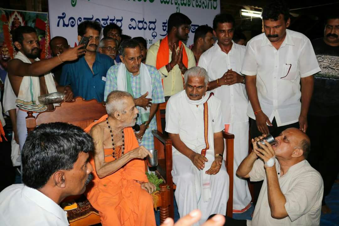 ನಂತರ ಅಮೃತಧಾರ ಗೋಶಾಲೆಯಲ್ಲಿ ಉಪವಾಸ ನಿರತ ರಾಜಾರಾಂ ಭಟ್ ಅವರು ಪೇಜಾವರ ಶ್ರೀಗಳಿಂದ ಹಾಲು ಸ್ವೀಕರಿಸಿ ನಿರಶನ ಕೈಬಿಟ್ಟರು.