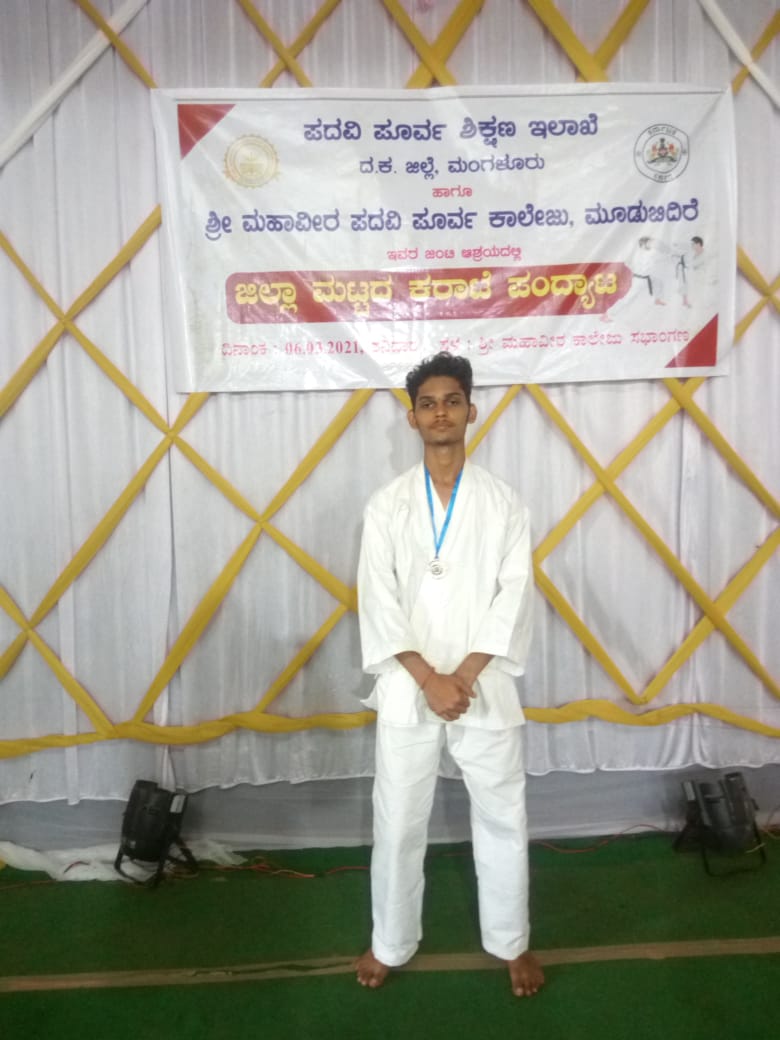 ಸಹಭಾಗಿತ್ವದಲ್ಲಿ ನಡೆದ ಜಿಲ್ಲಾ ಮಟ್ಟದ ಕರಾಟೆ ಪಂದ್ಯಾವಳಿಯಲ್ಲಿ ವಿವೇಕಾನ0ದ ಪದವಿಪೂರ್ವ ಕಾಲೇಜಿನ ದ್ವಿತೀಯ ವಾಣಿಜ್ಯ ವಿಭಾಗದ ಹೃತಿಕ್ ಕೆ ಎಂ ಬೆಳ್ಳಿಯ ಪದಕವನ್ನು ಗಳಿಸಿದ್ದಾರೆ. ಈತನು ಸುಳ್ಯ ತಾಲೂಕು ಕನಕಮಜಲು ಗ್ರಾಮದ ಮೂರ್ಜೆ ಹರೀಶ ಕೆ.ಎಂ ಮತ್ತು ವಿಶಾಲಕ್ಷಿ ದಂಪತಿಗಳ ಪುತ್ರ. ವಿದ್ಯಾರ್ಥಿಯ ಸಾಧನೆಗೆ ಕಾಲೇಜಿನ ಆಡಳಿತ ಮಂಡಳಿ, ಪ್ರಾಂಶುಪಾಲರು,ಅಧ್ಯಾಪಕ ವೃಂದ ಅಭಿನಂದಿಸಿದ್ದಾರೆ.