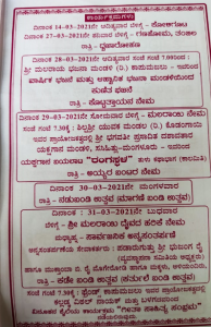 ಮಾರ್ಚ್ 27 ಬೆಳಿಗ್ಗೆ ಗಣಹೋಮ, ತಂಬಿಲ ಮತ್ತು ರಾತ್ರಿ ಧ್ವಜಾರೋಹಣ ನಡೆಯಲಿದ್ದು, ಮಾರ್ಚ್ 28 ರಂದು ಸಂಜೆ 7ಗಂಟೆಯಿಂದ ಶ್ರೀ ಮಲರಾಯ ಭಜನಾ ಮಂಡಳಿ(ರಿ) ಕಾಪುಮಜಲು ಇವರಿಂದ ವಾರ್ಷಿಕ ಭಜನೆ ಮತ್ತು ಆಹ್ವಾನಿತ ಭಜನಾ ಮಂಡಳಿಯಿಂದ ಕುಣಿತ ಭಜನೆ ಹಾಗೂ ರಾತ್ರಿ ಕೊಟ್ಟತ್ತಾಯನ ನೇಮ ಜರುಗಲಿದೆ.