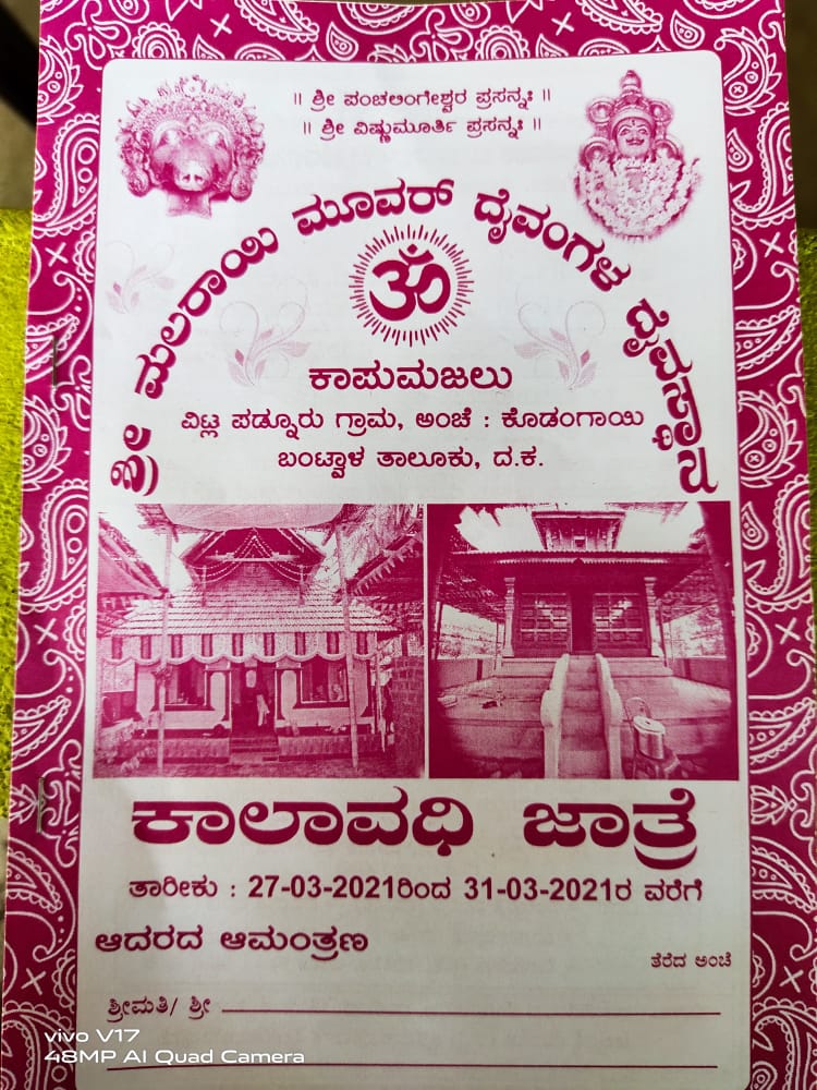 ಶ್ರೀ ಮಲರಾಯಿ ಮೂವರ್ ದೈವಂಗಳ ದೈವಸ್ಥಾನ ಕಾಪುಮಜಲು ವಿಟ್ಲ ಪಡ್ನೂರು, ಕೊಡಂಗಾಯಿ ಇಲ್ಲಿ ಮಾರ್ಚ್ 27 ರಿಂದ ಮಾರ್ಚ್ 31 ವರೆಗೆ ಕಾಲಾವಧಿ ಜಾತ್ರೆ-ಕಹಳೆ ನ್ಯೂಸ್