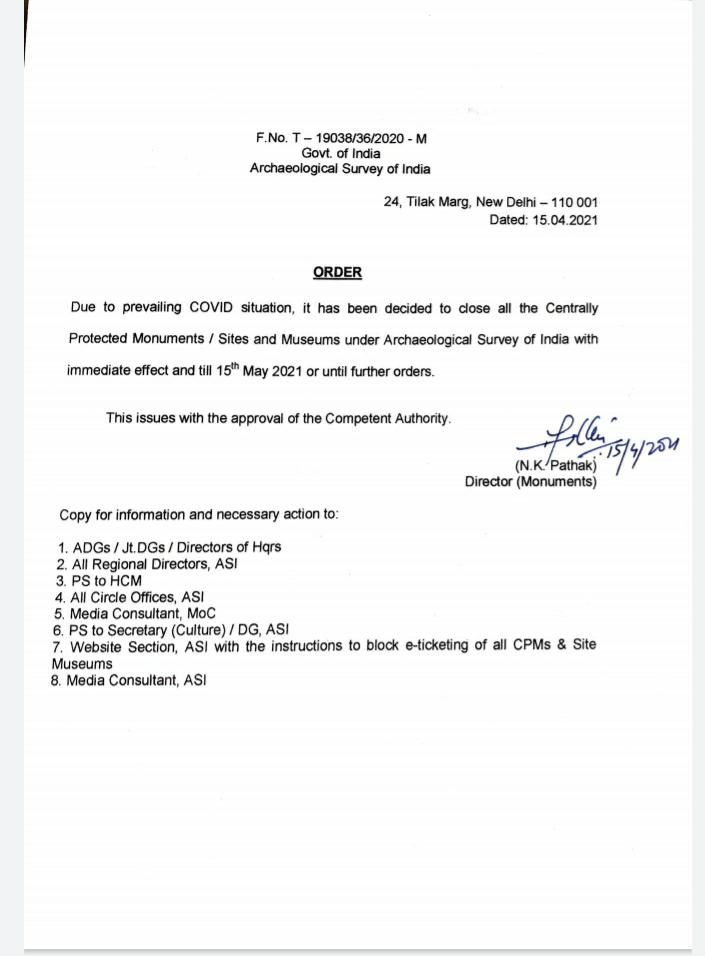ಈ ಕುರಿತು ಇಲಾಖೆಯ ಸ್ಮಾರಕಗಳ ನಿರ್ದೇಶಕ ಎನ್.ಕೆ.ಪಾಠಕ್ ಇಂದು ಆದೇಶ ಹೊರಡಿಸಿದ್ದಾರೆ. ಹಂಪಿ ಅಷ್ಟೇ ಅಲ್ಲದೆ ದೇಶದಲ್ಲಿರುವ ಎಲ್ಲಾ ಭಾರತೀಯ ಪುರಾತತ್ವ ಇಲಾಖೆಯಡಿ ಬರುವ ಸ್ಮಾರಕಗಳು ಮತ್ತು ಮ್ಯೂಸಿಯಂ ಗಳ ಪ್ರವೇಶ ಬಂದ್ ಮಾಡಲು ಆದೇಶಿಸಿದ್ದಾರೆ. ಇದರಿಂದ ಹಂಪಿಯ ವಿರೂಪಾಕ್ಷ ದೇವರಿಗೆ ಪೂಜೆ ಸೇರಿದಂತೆ ಧಾರ್ಮಿಕ ಕಾರ್ಯಗಳು ನಡೆಯಲಿವೆ ಆದರೆ ಪ್ರವಾಸಿಗರ ಮತ್ತು ಭಕ್ತರ ದರ್ಶನ ಬಂದ್ ಅಗಲಿದೆ. ಅದೇ ರೀತಿ ವಿಜಯ ವಿಠಲ್ ದೇವಸ್ಥಾನ,ಕಮಲ ಮಹಲ್, ಮತ್ತು ಕಮಲಾಪುರದಲ್ಲಿನ ಮ್ಯೂಸಿಯಂ ಬರುವ ಮೇ 15 ವರೆಗೆ ವೀಕ್ಷಣೆಗೆ ಬಂದ್ ಆಗಲಿವೆ.