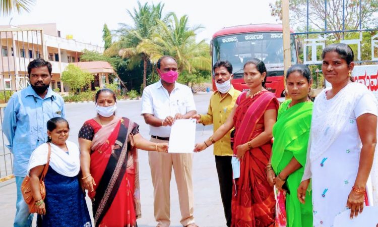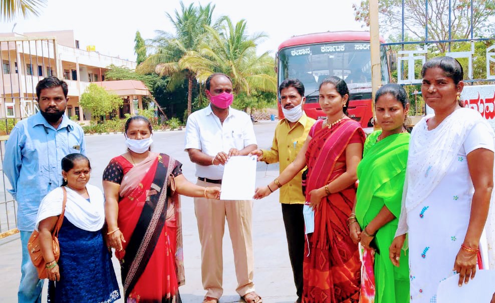 ಅವರು ಪಟ್ಟಣದ ಈ.ಕ.ರಾ.ರ.ಸಾ.ನಿಗಮ ಘಟಕದ ವ್ಯವಸ್ಥಾಪಕರಿಗೆ ಮನವಿ ಪತ್ರ ನೀಡಿದರು.