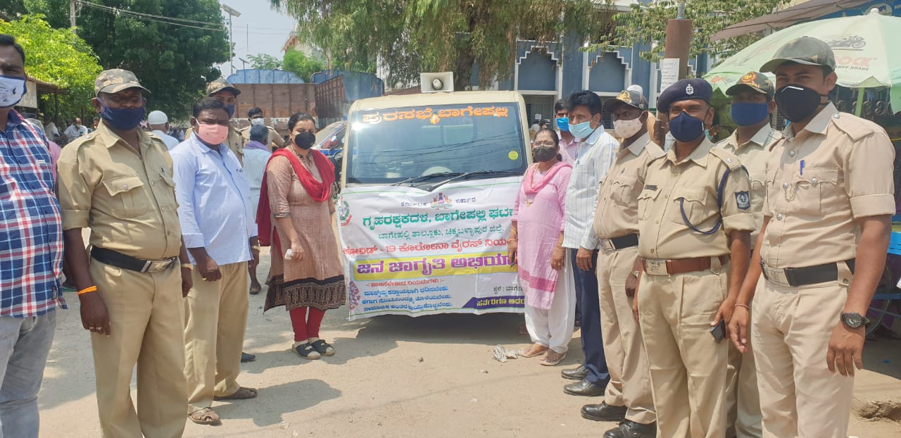 ಕೊರೊನಾ ವಿರುದ್ಧ ಜಾಗೃತಿಗಿಳಿದ ಪೋಲಿಸ್-ಗೃಹ ರಕ್ಷಕ ದಳ ಸಂದರ್ಭದಲ್ಲಿ ಪುರಸಭೆ ಮುಖ್ಯಾಧಿಕಾರಿ ಪಂಕಜಾರೆಡ್ಡಿ ಜನ ಜಾಗೃತಿ ಅಭಿಯಾನಕ್ಕೆ ಚಾಲನೆ ನೀಡಿ ಮಾತನಾಡಿ, ಇಂದು ಎಲ್ಲೆಡೆ ಕೊರೊನಾ ಸೋಂಕು ಹೆಚ್ಚಾಗಲು ಜನರ ನಿರ್ಲಕ್ಷ್ಯ ಕಾರಣವಾಗಿದೆ. ಮುಂದೆ ಪ್ರತಿಯೊಬ್ಬರೂ ಮನೆಯಿಂದ ಹೊರಬರಬೇಕಾದರೆ ಕಡ್ಡಾಯವಾಗಿ ಮಾಸ್ಕ್ ಧರಿಸಿರಬೇಕು ಹಾಗೂ ಸಾಮಾಜಿಕ ಅಂತರವನ್ನು ಕಾಪಾಡಿಕೊಳ್ಳಬೇಕು. ಜೊತೆಗೆ ಆಗಾಗ ಕೈಗಳನ್ನು ತೊಳೆಯುವುದನ್ನು ರೂಢಿಸಿಕೊಳ್ಳಬೇಕು ಎಂದು ಸಲಹೆ ನೀಡಿದರು.