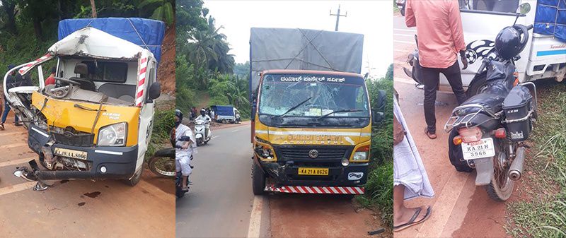 ಪುತ್ತೂರಿನಿಂದ ಮಂಗಳೂರಿಗೆ ತೆರಳುತ್ತಿದ್ದ ಲಾರಿ ಮತ್ತು ಮಾಣಿಯಿಂದ ಪುತ್ತೂರಿಗೆ ತೆರಳುತ್ತಿದ್ದ ಟಾಟಾ ಏಸ್ ವಾಹನ ಮುಖಾಮುಖಿ ಢಿಕ್ಕಿ ಸಂಭವಿಸಿದೆ. ಈ ವೇಳೆ ಟಾಟಾ ಏಸ್ ವಾಹನದ ಹಿಂದಿನಿಂದ ಬರುತ್ತಿದ್ದ ಬೈಕ್ ನಿಯಂತ್ರಣ ಕಳೆದು ಟಾಟಾ ಏಸ್ ಗೆ ಢಿಕ್ಕಿಯಾಗಿದೆ. ಈ ಘಟನೆಯಿಂದ ಟಾಟಾ ಏಸ್ ಚಾಲಕ ಹಾಗೂ ಬೈಕ್ ಸವಾರ ಗಂಭೀರ ಗಾಯಗೊಂಡಿದ್ದಾರೆ ಎಂದು ಸ್ಥಳೀಯರು ತಿಳಿಸಿದ್ದಾರೆ. ಹಾಗೂ ಗಾಯಾಳುಗಳನ್ನು ಆಸ್ಪತ್ರೆಗೆ ರವಾನಿಸಲಾಗಿದೆ ಎಂದು ತಿಳಿದು ಬಂದಿದೆ. ಅಪಘಾತದಿಂದ ಸ್ಥಳದಲ್ಲಿ ಕೆಲವು ಹೊತ್ತು ಸಂಚಾರ ಅಸ್ತವ್ಯಸ್ತವಾಗಿತ್ತು. ಸ್ಥಳಕ್ಕೆ ವಿಟ್ಲ ಪೊಲೀಸರು ಭೇಟಿ ನೀಡಿ ಪರಿಶೀಲನೆ ನಡೆಸಿದ್ದಾರೆ.