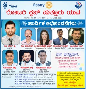 ರೋಟರಿ ಕ್ಲಬ್ ಪುತ್ತೂರು ಯುವ ಇದರ 2021-22ನೇ ಸಾಲಿನ ಪದಾಧಿಕಾರಿಗಳಿಗೆ ನಾಳೆ ಪದಪ್ರದಾನ ಕಾರ್ಯಕ್ರಮ – ಕಹಳೆ ನ್ಯೂಸ್