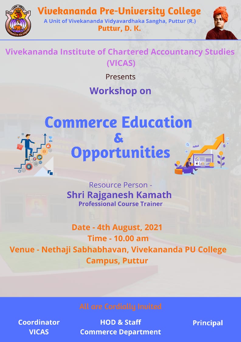 ವಿವೇಕಾನಂದ ಪ.ಪೂ ಕಾಲೇಜಿನಲ್ಲಿ ಅಗಸ್ಟ್ 4 ರಂದು ವಾಣಿಜ್ಯ ಶಿಕ್ಷಣ ಮತ್ತು ಅವಕಾಶಗಳ ಕುರಿತಾದ ಮಾಹಿತಿ ಕಾರ್ಯಗಾರ-ಕಹಳೆ ನ್ಯೂಸ್