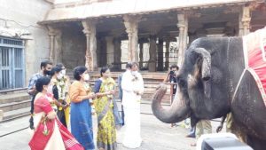 ಹೊಸಪೇಟೆ: ವಿಶ್ವವಿಖ್ಯಾತ ಹಂಪಿಗೆ ಉಪರಾಷ್ಟ್ರಪತಿ ವೆಂಕಯ್ಯನಾಯ್ಡು ಅವರು ಕುಟುಂಬ ಸಮೇತ ಭೇಟಿ ನೀಡಿದರು. ಬಳಿಕ ವಿರೂಪಾಕ್ಷೇಶ್ವರ, ಪಾರ್ವತಿ, ಭುವನೇಶ್ವರಿ ದೇವಾಲಯದಲ್ಲಿ ವಿಶೇಷ ಪೂಜೆ ಸಲ್ಲಿಸಿದರು. ಉಪರಾಷ್ಟ್ರಪತಿ ಭೇಟಿಯ ಹಿನ್ನೆಲೆಯಲ್ಲಿ ವಿರೂಪಾಕ್ಷೇಶ್ವರ ದೇವಸ್ಥಾನ, ವಿಜಯ ವಿಠಲ ದೇವಸ್ಥಾನದಲ್ಲಿ ಕೆಂಪು ನೆಲಹಾಸು ಹಾಕಲಾಗಿತ್ತು. ದೇವರ ದರ್ಶನದ ಬಳಿಕ ಅವರು ಕೃಷ್ಣ ದೇವಸ್ಥಾನ, ಕಡಲೆಕಾಳು, ಸಾಸಿವೆಕಾಳು, ಕಮಲ ಮಹಲ್, ಮಹಾನವಮಿ ದಿಬ್ಬ, ವಿಜಯ ವಿಠಲ ದೇವಸ್ಥಾನಕ್ಕೆ ತೆರಳಿ ಕಲ್ಲಿನ ರಥ, ಸಪ್ತಸ್ವರ ಮಂಟಪ ಕಣ್ತುಂಬಿಕೊಂಡರು. ಶ್ರೀಮಂತ ವಾಸ್ತುಶಿಲ್ಪ ನೋಡಿ ಬೆರಗಾದರು.