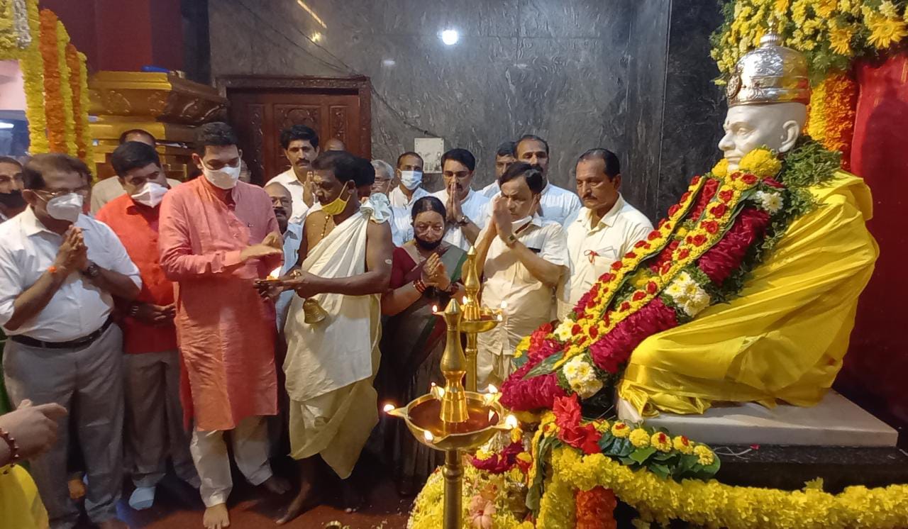 ಮಂಗಳೂರು: ಸಮಾಜ ಸುಧಾರಕ ಬ್ರಹ್ಮ ಶ್ರೀ ನಾರಾಯಣ ಗುರುಗಳ 167ನೇ ಜನ್ಮದಿನಾಚರಣೆಯ ಪ್ರಯುಕ್ತ ಸಂಸದ ನಳಿನ್ ಕುಮಾರ್ ಕಟೀಲ್ ಹಾಗೂ ಮಂಗಳೂರು ನಗರ ದಕ್ಷಿಣ ಶಾಸಕ ವೇದವ್ಯಾಸ್ ಕಾಮತ್ ಕುದ್ರೋಳಿ ಶ್ರೀ ಗೋಕರ್ಣನಾಥ ದೇವಸ್ಥಾನಕ್ಕೆ ಭೇಟಿ ನೀಡಿ ಪೂಜೆ ಸಲ್ಲಿಸಿದರು.