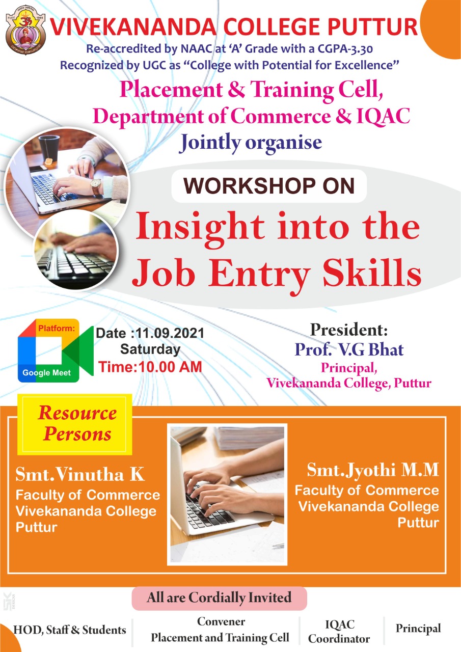 ಪುತ್ತೂರು: ವಿವೇಕಾನಂದ ಮಹಾವಿದ್ಯಾಲಯದ ಕಾಲೇಜಿನ ವಾಣಿಜ್ಯಶಾಸ್ತ್ರ ವಿಭಾಗ, ಉದ್ಯೋಗ ಹಾಗೂ ತರಬೇತಿ ಘಟಕ ಹಾಗೂ ಐಕ್ಯೂಎಸಿ ಘಟಕದ ಸಂಯುಕ್ತ ಆಶ್ರಯದಲ್ಲಿ ತೃತೀಯ ಬಿಕಾಂ ಪದವಿ ವಿದ್ಯಾರ್ಥಿಗಳಿಗಾಗಿ ನಡೆಸಿದ ಕಾರ್ಯಗಾರದಲ್ಲಿ ಮುಖ್ಯ ಸಂಪನ್ಮೂಲ ವ್ಯಕ್ತಿಯಾಗಿ ಭಾಗವಹಿಸಿ Insight into Job Entry Skill ಎಂಬ ವಿಷಯದ ಬಗ್ಗೆ ಮಾತನಾಡಿದ ವಿವೇಕಾನಂದ ಮಹಾವಿದ್ಯಾಲಯದ ವಾಣಿಜ್ಯಶಾಸ್ತ್ರ ವಿಭಾಗದ ಉಪನ್ಯಾಸಕಿ ವಿನುತ.ಕೆ. ಸಿವಿ ಬರೆಯುವ ಜ್ಞಾನವನ್ನು ಕಡಿಮೆ ಅಂದಾಜು ಮಾಡಲು ಸಾಧ್ಯವಿಲ್ಲ. ಎದ್ದು ಕಾಣುವ ಹಾಗೆ ಮಾಡಲು ಕೆಲವು ಸಲಹೆ ಪಾಲಿಸುವುದು ಮುಖ್ಯ ಎಂದು ಹೇಳಿದರು.