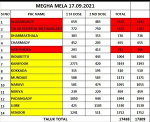 ಕಣಿಯೂರು ಪ್ರಾಥಮಿಕ ಆರೋಗ್ಯ ಕೇಂದ್ರದ ಅಧೀನದಲ್ಲಿ ನಡೆದ ಲಸಿಕಾ ಮೆಗಾಮೇಳದಲ್ಲಿ ತುರ್ಕಲಿಕೆ ಹಿರಿಯ ಪ್ರಾಥಮಿಕ ಶಾಲೆ ಕಲ್ಲೇರಿಯಲ್ಲಿ 362 ಡೋಸ್, ಅಂಡೆತಡ್ಕ ಶಾಲೆ, ಇಳಂತಿಳದಲ್ಲಿ 333 ಡೋಸ್, ಬಂದಾರುಪಂಚಾಯತ್ ಸಭಾಭವನದಲ್ಲಿ 213 ಡೋಸ್, ತಣ್ಣಿರುಪಂತ ಹಿರಿಯ ಪ್ರಾಥಮಿಕ ಶಾಲೆ, ಅಳಕೆಯಲ್ಲಿ 500 ಡೋಸ್, ಮಚ್ಚಿನ ಸಭಾಭವನದಲ್ಲಿ 326 ಡೋಸ್, ಬಾರ್ಯ ಹಿರಿಯ ಪ್ರಾಥಮಿಕ ಶಾಲೆಯಲ್ಲಿ 249 ಡೋಸ್, ತೆಕ್ಕಾರು ಕುಟ್ಟಿಕಳ ಹಿರಿಯ ಪ್ರಾಥಮಿಕ ಶಾಲೆಯಲ್ಲಿ 293 ಡೋಸ್, ಕುಪ್ಪೆಟ್ಟಿ ಶಾಲೆಯಲ್ಲಿ 403 ಡೋಸ್, ಕಣಿಯೂರು ಪ್ರಾಥಮಿಕ ಆರೋಗ್ಯ ಕೇಂದ್ರದಲ್ಲಿ 346 ಡೋಸ್, ಬಾರ್ಯಾ ಸಕ್ರಿಕಟ್ಟೆ ದೊಡ್ಡಕಲ್ಲು ಶಾಲೆಯಲ್ಲಿ 168 ಡೋಸ್ಗಳು ಸೇರಿದಂತೆ ಒಟ್ಟು 3193ಡೋಸ್ ಲಸಿಕಾ ಮೆಗಾಮೇಳದಲ್ಲಿ ವಿತರಿಸಲಾಗಿದ್ದು, ಕಣಿಯೂರು ಪ್ರಾಥಮಿಕ ಆರೋಗ್ಯ ಕೇಂದ್ರ ಬೆಳ್ತಂಗಡಿ ತಾಲೂಕಿನಲ್ಲಿ ಪ್ರಥಮ ಸ್ಥಾನ ಪಡಯುವಲ್ಲಿ ಯಶಸ್ವಿಯಾಗಿದೆ. ಲಸಿಕಾ ಮೆಗಾಮೇಳ ಕಾರ್ಯಕ್ರಮದಲ್ಲಿ ತಾಲೂಕು ವೈದ್ಯಾಧಿಕಾರಿ ಡಾ| ಕಲಾಮಧು, ಡಾ| ಡಯಾನ ಸವಿತಾ, ಆರೋಗ್ಯ ಸಂರಕ್ಷಣಾಧಿಕಾರಿಗಳು, ಆಶಾ ಕಾರ್ಯಕರ್ತೆಯರು, ಸಿಬ್ಬಂದಿಗಳು, ಅಂಗನವಾಡಿ ಕಾರ್ಯಕರ್ತೆಯರು, ಗ್ರಾಮ ಪಂಚಾಯತ್ ಅಧ್ಯಕ್ಷರು, ಉಪಾಧ್ಯಕ್ಷರು, ಸದಸ್ಯರುಗಳು, ಗ್ರಾಮ ಪಂಚಾಯತ್ ಅಭಿವೃದ್ಧಿ ಅಧಿಕಾರಿಗಳು, ಸಿಬ್ಬಂದಿವರ್ಗ ಕೋರೋನಾ ವಾರಿಯರ್ಸ್ಗಳು ಉಪಸ್ಥಿತರಿದ್ದರು.