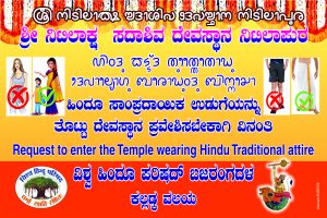 ಹಿಂದೂ ಧಾರ್ಮಿಕ ಭಾವನೆಗೆ ಧಕ್ಕೆಯಾಗುವಂತೆ ವಸ್ತ್ರಗಳನ್ನು ಧರಿಸಿಕೊಂಡು ದೇವಾಲಯ ಪ್ರವೇಶಿಸುತ್ತಿದ್ದು, ಈ ನಿಟ್ಟಿನಲ್ಲಿ ದೇವಸ್ಥಾನದಲ್ಲಿ ಶೀಘ್ರವೇ ವಸ್ತ್ರಸಂಹಿತೆಯನ್ನು ಜಾರಿಗೊಳಿಸಬೇಕು. ಸಂಪ್ರದಾಯಿಕ ಉಡುಗೆಯನ್ನು ತೊಟ್ಟು ದೇವಸ್ಥಾನ ಪ್ರವೇಶಿಸುವಂತೆ ಭಕ್ತಾಧಿಗಳಿಗೆ ಸೂಚನೆ ನೀಡಬೇಕೆಂದು ಆಗ್ರಹಿಸಿ ವಿಶ್ವ ಹಿಂದೂ ಪರಿಷದ್ ಬಜರಂಗದಳ ಕಲ್ಲಡ್ಕ ವಲಯದ ವತಿಯಿಂದ ಶ್ರೀ ನಿಟಿಲಾಕ್ಷ ಸದಾಶಿವ ದೇವಸ್ಥಾನ ನಿಟಿಲಾಪುರ ದೇವಾಲಯದ ಅಧ್ಯಕ್ಷರು ಮತ್ತು ವ್ಯವಸ್ಥಾಪನ ಸಮಿತಿಗೆ ಮನವಿ ಸಲ್ಲಿಸಿ, ವಸ್ತ್ರ ಸಂಹಿತೆ ಕಡ್ಡಾಯ ಎಂಬ ನಾಮಫಲಕ ಅಳವಡಿಸಲಾಯಿತು.