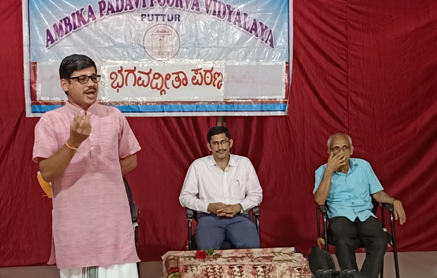 ಪುತ್ತೂರು: ವಿನಾಕಾರಣ ಯಾರನ್ನು ದ್ವೇಷ ಮಾಡಬಾರದು, ಎಲ್ಲರೊಂದಿಗೂ ಸ್ನೇಹಭಾವದಿಂದ ಇರಬೇಕು. ಅಸಾಹಯಕರನ್ನು ಕಂಡಾಗ ದಯೆ, ಕರುಣೆ ಪ್ರೀತಿ ವಾತ್ಸಲ್ಯ ಇರಬೇಕು. ಎಲ್ಲವು ತಮ್ಮಿಂದಲೇ ಹಾಗೂ ತಮ್ಮದೇ ಅನ್ನುವ ಮಮಕಾರ ಇರಬಾರದು. ಅಹಂಕಾರವನ್ನು ತೊರೆದು ಬೇರೆಯವರ ಸುಖ ದುಃಖಗಳಲ್ಲಿ ಭಾಗಿಯಾಬೇಕು ಹೀಗೆ ಅನೇಕ ಸಂಗತಿಗಳನ್ನು ಶ್ರೀಕೃಷ್ಣನು ಭಗವದ್ಗೀತೆಯ ಮುಖಾಂತರ ಜಗತ್ತಿಗೆ ಸಾರಿದ್ದಾನೆ ಎಂದು ವೇದಮೂರ್ತಿ ಶ್ರೀಕೃಷ್ಣ ಉಪಾಧ್ಯಾಯ ಹೇಳಿದರು. ಅವರು ನಗರದ ನಟ್ಟೋಜ ಫೌಂಡೇಶನ್ ಟ್ರಸ್ಟ್ ಮುನ್ನಡೆಸುತ್ತಿರುವ ಬಪ್ಪಳಿಗೆಯ ಅಂಬಿಕಾ ಪದವಿಪೂರ್ವ ವಿದ್ಯಾಲಯದಲ್ಲಿ ನೈತಿಕ ಶಿಕ್ಷಣ ವಿಷಯವಾಗಿ ಮಾತನಾಡುತ್ತಾ ಭಗವದ್ಗೀತೆಯ ಸಂದೇಶಗಳ ಬಗೆಗೆ ತಿಳಿಸಿಕೊಟ್ಟರು. ನಾವೆಲ್ಲರೂ ಕ್ಷಮಾಗುಣವನ್ನು ಅಳವಡಿಸಿಕೊಳ್ಳಬೇಕು. ನಮ್ಮನ್ನು ದ್ವೇಷಿಸುವವರನ್ನು ಪ್ರೀತಿಸುವ ವಿಶಾಲ ಹೃದಯಿಗಳಾಗಬೇಕು. ಭಗವಂತ ಹೇಳಿದ ಜೀವನ ಸಂದೇಶವನ್ನು ಅವನದ್ದೇ ಮಾತುಗಳಿಂದ ಕಲಿಯುವುದೇ ಭಗವದ್ಗೀತೆ ಪಠಣ. ಕೃಷ್ಣನಿಗೆ ಸ್ಥಾನಕೊಡಬೇಕಾದದ್ದು ನಮ್ಮ ಹೃದಯದಲ್ಲಿಯೇ ಹೊರತು ಗರ್ಭಗುಡಿಯಲ್ಲಲ್ಲ ಎಂದರಲ್ಲದೆ ಎಲ್ಲಾ ಸಂಪ್ರದಾಯವನ್ನು ಒಪ್ಪುವ ಸಂಸ್ಕೃತಿ ಮತ್ತು ವಿಶಾಲ ಮನಸ್ಥಿತಿ ನಮ್ಮ ಭಾರತೀಯರದ್ದು. ನಮ್ಮದೇ ಶ್ರೇಷ್ಠ ಎನ್ನುವ ಮನೋಭಾವನೆಯಿಂದ ಹೊರಬಂದು ಎಲ್ಲವನ್ನು ಹಾಗೂ ಎಲ್ಲರನ್ನು ಸಮಾನ ಭಾವನೆಯಿಂದ ಕಾಣುವ ಸ್ವಚ್ಛ ಹೃದಯಿಗಳಾಗಬೇಕು ಎಂದು ನುಡಿದರು. ಕಾರ್ಯಕ್ರಮದಲ್ಲಿ ಕಾಲೇಜಿನ ಉಪ ಪ್ರಾಂಶುಪಾಲ ರಾಮಚಂದ್ರ ಭಟ್ ಹಾಗೂ ಕಾಲೇಜಿನ ಉಪನ್ಯಾಸಕ ವೃಂದದವರು ಉಪಸ್ಥಿತರಿದ್ದರು. ಪ್ರಾಂಶುಪಾಲ ಶಂಕರನಾರಾಯಣ ಭಟ್ ಪ್ರಸ್ತಾವನೆಗೈದರು. ಕಾಲೇಜಿನ ವಿದ್ಯಾರ್ಥಿನಿ ಪ್ರೀತಲ್ ದಯಾನಂದ್ ನಿರೂಪಿಸಿ ಸ್ವಾಗತಿಸಿದರು.