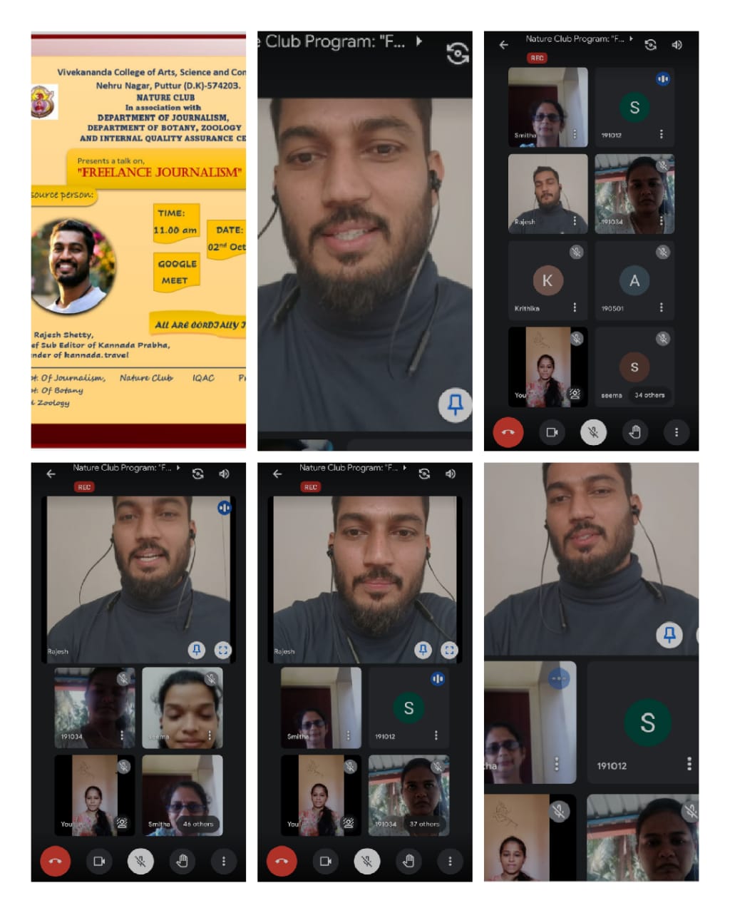 ಪುತ್ತೂರು: ವಿವೇಕಾನಂದ ಮಹಾವಿದ್ಯಾಲಯದ ನೇಚರ್ಕ್ಲಬ್ ವತಿಯಿಂದ ಪತ್ರಿಕೋದ್ಯಮ ವಿಭಾಗ, ಸಸ್ಯಶಾಸ್ತç ವಿಭಾಗ, ಪ್ರಾಣಿಶಾಸ್ತç ವಿಭಾಗ ಮತ್ತು ಐಕ್ಯೂಎಸಿ ಘಟಕಗಳ ಸಂಯುಕ್ತ ಆಶ್ರಯದಲ್ಲಿ “ಫ್ರೀಲಾನ್ಸ್ ಜರ್ನಲಿಸಂ” ಎಂಬ ವಿಷಯದ ಕುರಿತಾಗಿ ಆಯೋಜಿಸಲಾದ ವೆಬಿನಾರ್ನಲ್ಲ್ಲಿ, ಮುಖ್ಯ ಸಂಪನ್ಮೂಲ ವ್ಯಕ್ತಿಯಾಗಿ ಭಾಗವಹಿಸಿ ಮಾತನಾಡಿದ ಕನ್ನಡ ಪ್ರಭ ದಿನಪತ್ರಿಕೆಯ ಮುಖ್ಯ ಉಪಸಂಪಾದಕ, ‘ಕನ್ನಡ ಟ್ರಾವೆಲ್’ ವೆಬ್ಸೈಟ್ನ ಸ್ಥಾಪಕ ರಾಜೇಶ್ ಶೆಟ್ಟಿಯವರು ಪತ್ರಿಕೋದ್ಯಮ ಅನ್ನುವುದು ಅಗಾಧವಾದ ಅವಕಾಶಗಳನ್ನು ಹೊಂದಿದ ಕ್ಷೇತ್ರ. ದಿನನಿತ್ಯದ ಜೀವನದಲ್ಲಿ ಹೊಸ ಅನುಭವ, ಹೊಸ ಪಾಠಗಳನ್ನು ಕಲಿಸುತ್ತದೆ. ಇತ್ತೀಚಿನ ದಿನಗಳಲ್ಲಿ ಕಥೆ, ಲೇಖನಗಳನ್ನು ಪ್ರಕಟಿಸಲು ಮುದ್ರಣ ಮತ್ತು ಡಿಜಿಟಲ್ ಮಾದ್ಯಮಗಳಲ್ಲಿ ಹಲವಾರು ಅವಕಾಶಗಳು ಇದೆ. ಈ ಅವಕಾಶಗಳನ್ನು ವಿದ್ಯಾರ್ಥಿಗಳು ಬಳಸಿಕೊಳ್ಳಬೇಕು. ಹವ್ಯಾಸಿ ಪತ್ರಿಕೋದ್ಯಮ ಅನ್ನುವುದು ಆದಾಯದ ಮೂಲವೂ ಹೌದು. ವಿದ್ಯಾರ್ಥಿಗಳಿಗೆ ವಿದ್ಯೆಯ ಜೊತೆಗೆ ಪ್ರಾಯೋಗಿಕ ವಿಷಯಗಳ ಬಗ್ಗೆ ತಿಳಿದಿರಬೇಕು. ವಿದ್ಯಾರ್ಥಿಗಳು ಲೇಖನಗಳನ್ನು ಪತ್ರಿಕೆಯಲ್ಲಿ ಪ್ರಕಟಿಸಿದಾಗ ಓದುಗರ ಮತ್ತು ಬರಹಗಾರರ ಜ್ಞಾನವು ವೃದ್ಧಿಸುತ್ತದೆ. ವಿಷಯ ಸಂಗ್ರಹಣೆಗಾಗಿ ಓದುವ ಹವ್ಯಾಸವನ್ನು ಬೆಳೆಸಿಕೊಳ್ಳಬೇಕು. ಎಂದು ನುಡಿದರು.