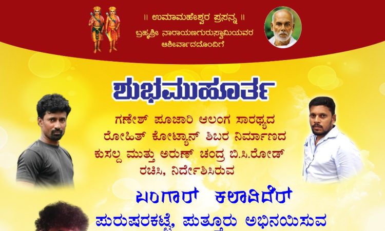 ನವೆಂಬರ್ 05 ರಂದು ಬೆಳಗ್ಗೆ ಮುಕ್ವೆ ಶ್ರೀ ಉಮಾಮಹೇಶ್ವರ ದೇವಸ್ಥಾನದಲ್ಲಿ ಪುರುಷರಕಟ್ಟೆಯ ಬಂಗಾರ್ ಕಲಾವಿದರ್ ” ಪರಕೆ ಸಂದವೊರ್ಚಿ ” ತುಳು ಹಾಸ್ಯಮಾಯ ನಾಟಕ ಮುಹೂರ್ತ – ಕಹಳೆ ನ್ಯೂಸ್