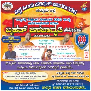 ಈ ಬೃಹತ್ ಸಮಾವೇಶದಲ್ಲಿ ಹಿಂದೂ ಬಂಧುಗಳು,ಮಾತೆಯರು ಹೆಚ್ಚಿನ ಸಂಖ್ಯೆಯಲ್ಲಿ ಭಾಗವಹಿಸಬೇಕೆಂದು ವಿಶ್ವ ಹಿಂದೂ ಪರಿಷತ್ ಪುತ್ತೂರು ಜಿಲ್ಲಾ ಅಧ್ಯಕ್ಷರಾದ ಡಾ ಕೃಷ್ಣ ಪ್ರಸನ್ನ, ಜಿಲ್ಲಾ ಕಾರ್ಯದರ್ಶಿ ಸತೀಶ್ ಬಿ,ಎಸ್ ಹಾಗೂ ಬಜರಂಗದಳ ಪುತ್ತೂರು ಜಿಲ್ಲಾ ಸಂಚಾಲಕರಾದ ಭರತ್ ಕುಮ್ಡೇಲ್ ಇವರು ಪತ್ರಿಕಾ ಪ್ರಕಟಣೆಯಲ್ಲಿ ತಿಳಿಸಿದ್ದಾರೆ.