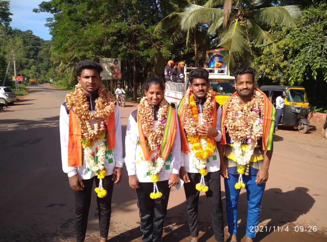 ಹರಿಯಾಣದಲ್ಲಿ ನಡೆದ ರಾಷ್ಟ್ರಮಟ್ಟದ ತ್ರೋಬಾಲ್ ಪಂದ್ಯಾಟದಲ್ಲಿ ಅತ್ಯುತ್ತಮ ಪ್ರದರ್ಶನ ನೀಡಿ ತವರೂರಿಗೆ ಆಗಮಿಸಿದ ಸೀನಿಯರ್ ವಿಭಾಗದಲ್ಲಿ ಸಾಧನೆ ಮಾಡಿದ ಭರತೇಶ್ ಗೌಡ ಮೈರೋಳ್ತಡ್ಕ, ದ್ವೀತಿಯ ಸ್ಥಾನ ಪಡೆದ ಆಶಿಕಾ ಮುಗೇರಡ್ಕ, ಮೊಗ್ರು ಹಾಗೂ ಸಬ್ ಜ್ಯೂನಿಯರ್ ವಿಭಾಗದಲ್ಲಿ ದ್ವೀತಿಯ ಸ್ಥಾನ ಪಡೆದ ಅಭಿಶ್ರುತ್ ಮುರ,ಮೊಗ್ರು. ಸುಜಿತ್ ಶ್ರೀರಾಮನಗರ, ಬಂದಾರು ಇವರನ್ನು ಜನಪ್ರತಿನಿಧಿಗಳು, ಗಣ್ಯರು, ಹಿರಿಯರು, ಕ್ರೀಡಾಭಿಮಾನಿಗಳು, ಗ್ರಾಮಸ್ಥರು ಸೇರಿ ನಾಸಿಕ್ ಬ್ಯಾಂಡ್,ಸಿಡಿಮದ್ದು ಸಿಡಿಸಿ, ಪದ್ಮುಂಜ, ಮೈರೋಳ್ತಡ್ಕ, ಮುರ,ಮುಗೇರಡ್ಕ, ಬಂದಾರು ತನಕ ಮೆರವಣಿಗೆ ಮೂಲಕ ತೆರಲಿ ಬಳಿಕ ವಿಜೇತರಿಗೆ ಬಂದಾರು ಹಾಗೂ ಮೊಗ್ರುವಿನ ನಾಗರಿಕರು ಅಭಿನಂದಿಸಿದರು.