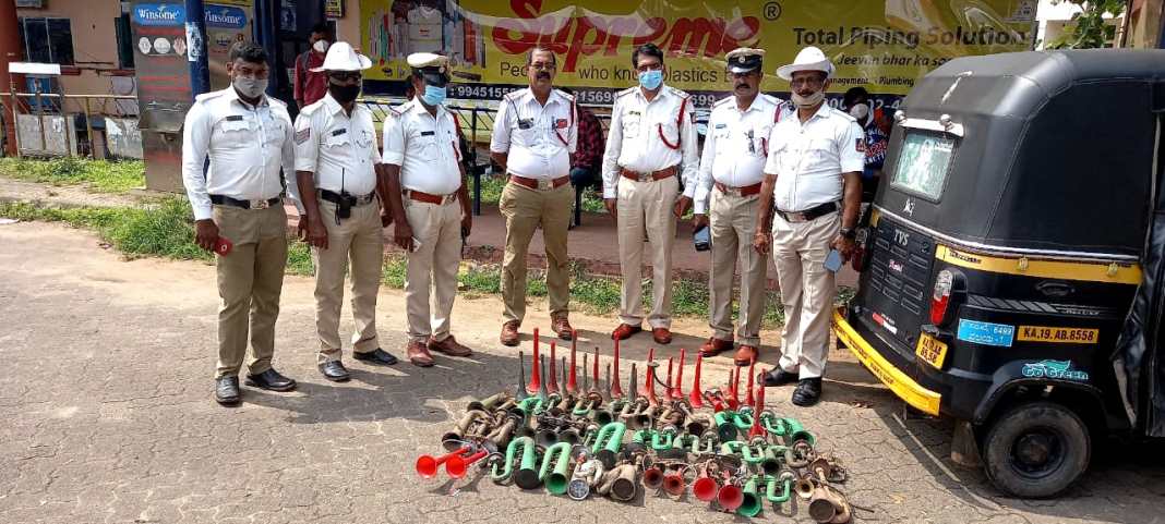 ಮಂಗಳೂರು ನಗರ ಪೊಲೀಸ್ ಕಮೀಷನರ್ ನೇತೃತ್ವದಲ್ಲಿ ನಗರದ 4 ಸಂಚಾರಿ ವಿಭಾಗದ ಪೊಲೀಸರು ನಗರದ ವಿವಿಧೆಡೆ ಕಾರ್ಯಾಚರಣೆ ನಡೆಸಿ, ಖಾಸಗಿ ಸಿಟಿ ಹಾಗೂ ಸರ್ವಿಸ್ ಬಸ್ಗಳ ಹಾರ್ನ್ ಗಳನ್ನು ತೆರವುಗೊಳಿಸಿದ್ದಾರೆ.