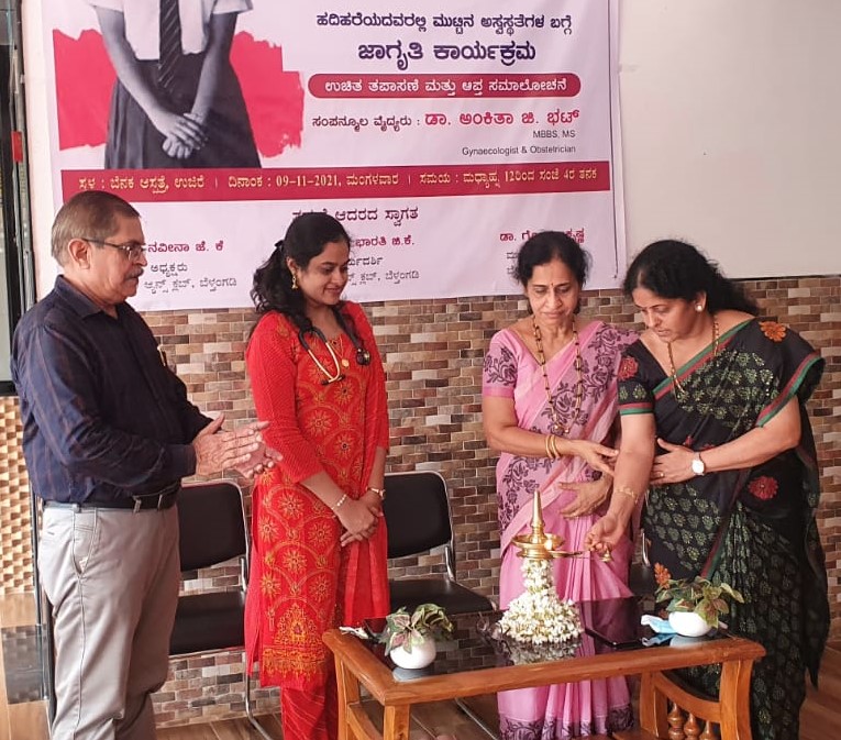 ಬೆಳ್ತಂಗಡಿ: ಉಜಿರೆಯ ಬೆನಕ ಆಸ್ಪತ್ರೆಯಲ್ಲಿ ಬೆಳ್ತಂಗಡಿ ರೋಟರಿ ಆನ್ಸ್ ಕ್ಲಬ್ ಸಹಯೋಗದಲ್ಲಿ ಹದಿಹರೆಯದವರಲ್ಲಿ ಮುಟ್ಟಿನ ಅಸ್ವಸ್ಥತೆಗಳ ಬಗ್ಗೆ ಜಾಗೃತಿ ಕಾರ್ಯಕ್ರಮದ ಉದ್ಘಾಟನಾ ಸಮಾರಂಭದ ಅಧ್ಯಕ್ಷತೆ ವಹಿಸಿ ಮಾತನಾಡಿದ ಬೆನಕ ಆಸ್ಪತ್ರೆಯ ವೈದ್ಯೆ ಡಾ.ಭಾರತಿ.ಜಿ.ಕೆ. ಯವರು ಪ್ರೌಡಾವಸ್ಥೆಯಲ್ಲಿ ಪೌಷ್ಟಿಕಾಂಶಕ್ಕೆ ಸಂಬಂಧಿಸಿದ ದೀರ್ಘಕಾಲೀನ ರೋಗಗಳಿಗೆ ತುತ್ತಾಗುವುದನ್ನು ತಡೆಗಟ್ಟಲು ಹದಿಹರೆಯದಲ್ಲಿಯೇ ಆರೋಗ್ಯಪೂರ್ಣ ಆಹಾರ ಸೇವನೆ ಮತ್ತು ಉತ್ತಮ ವ್ಯಾಯಾಮದ ಅಭ್ಯಾಸಗಳನ್ನು ರೂಪಿಸಬೇಕು. ಕ್ಷಿಪ್ರವಾಗಿ ಹೆಚ್ಚುತ್ತಿರುವ ಬೊಜ್ಜಿನ ಸಮಸ್ಯೆಯನ್ನೂ ತಡೆಗಟ್ಟಲು ಕೂಡಾ ಆರೋಗ್ಯಪೂರ್ಣ ಜೀವನಶೈಲಿಯನ್ನು ಪ್ರೋತ್ಸಾಹಿಸುವುದು ಅಗತ್ಯ ಎಂದು ಅಭಿಪ್ರಾಯಪಟ್ಟರು.
