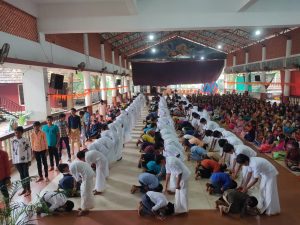 ಕಾರ್ಯಕ್ರಮದಲ್ಲಿ ಅತಿಥಿಗಳಿಗೆ ಹೂಗುಚ್ಛ ನೀಡಿ ಸ್ವಾಗತಿಸಲಾಯಿತು. ನಂತರ ಪ್ರೌಢ ಶಿಕ್ಷಣ ಪಡೆಯುತ್ತಿರುವ ವಿದ್ಯಾರ್ಥಿಗಳು ಭಾರತ ಮಾತೆಗೆ ಪುಷ್ಪಾರ್ಚನೆ ಹಾಗೂ ತಿಲಕಧಾರಣೆ ಮಾಡಿ ಹಿರಿಯರಿಂದ ಆಶೀರ್ವಾದ ಪಡೆದುಕೊಂಡರು. ಕಿರಿಯ ವಿದ್ಯಾರ್ಥಿಗಳು ಪ್ರೌಢ ಶಿಕ್ಷಣ ಪಡೆಯುತ್ತಿರುವ ಹಿರಿಯ ವಿದ್ಯಾರ್ಥಿಗಳಿಗೆ ಹೂ ನೀಡಿ ಆಶೀರ್ವಾದ ಪಡೆದುಕೊಂಡರು. ಬಳಿಕ ಹಿರಿಯ ವಿದ್ಯಾರ್ಥಿಗಳು ತಮ್ಮ ಅನಿಸಿಕೆ ಹಂಚಿಕೊಂಡರು. 7ನೇ ತರಗತಿಯ ವಿದ್ಯಾರ್ಥಿಯಾದ ಪ್ರಾಣೇಶ್ ಪ್ರೇರಣಾ ಗೀತೆ ಹಾಡಿದನು.