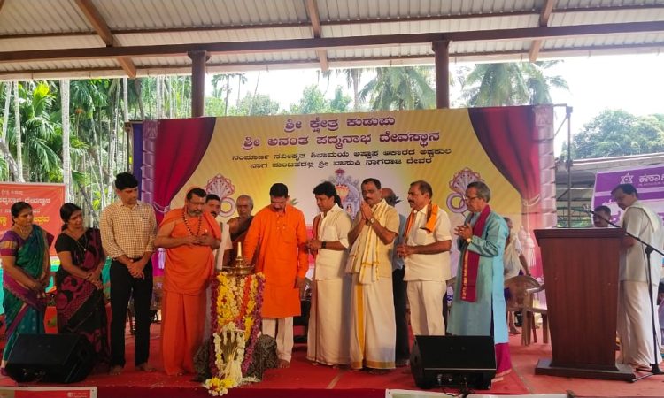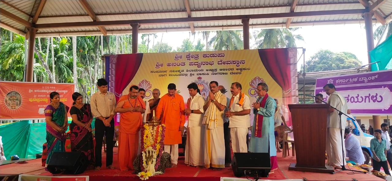 ಮಂಗಳೂರು: ಶ್ರೀ ಕ್ಷೇತ್ರ ಕುಡುಪು ಶ್ರೀ ಅನಂತ ಪದ್ಮನಾಭ ದೇವಸ್ಥಾನದ ಸಂಪೂರ್ಣ ನವೀಕೃತ ಶಿಲಾಮಯ ಅಷ್ಟಾಸ್ರ ಆಕಾರದ ಅಷ್ಟಕುಲ ನಾಗಮಂಟಪದಲ್ಲಿ ಶ್ರೀ ವಾಸುಕಿ ನಾಗರಾಜ ದೇವರ ಪುನಃ ಪ್ರತಿಷ್ಟಾ ಮಹೋತ್ಸವದ ಸಭಾ ಕಾರ್ಯಕ್ರಮ ಜರುಗಿತು.