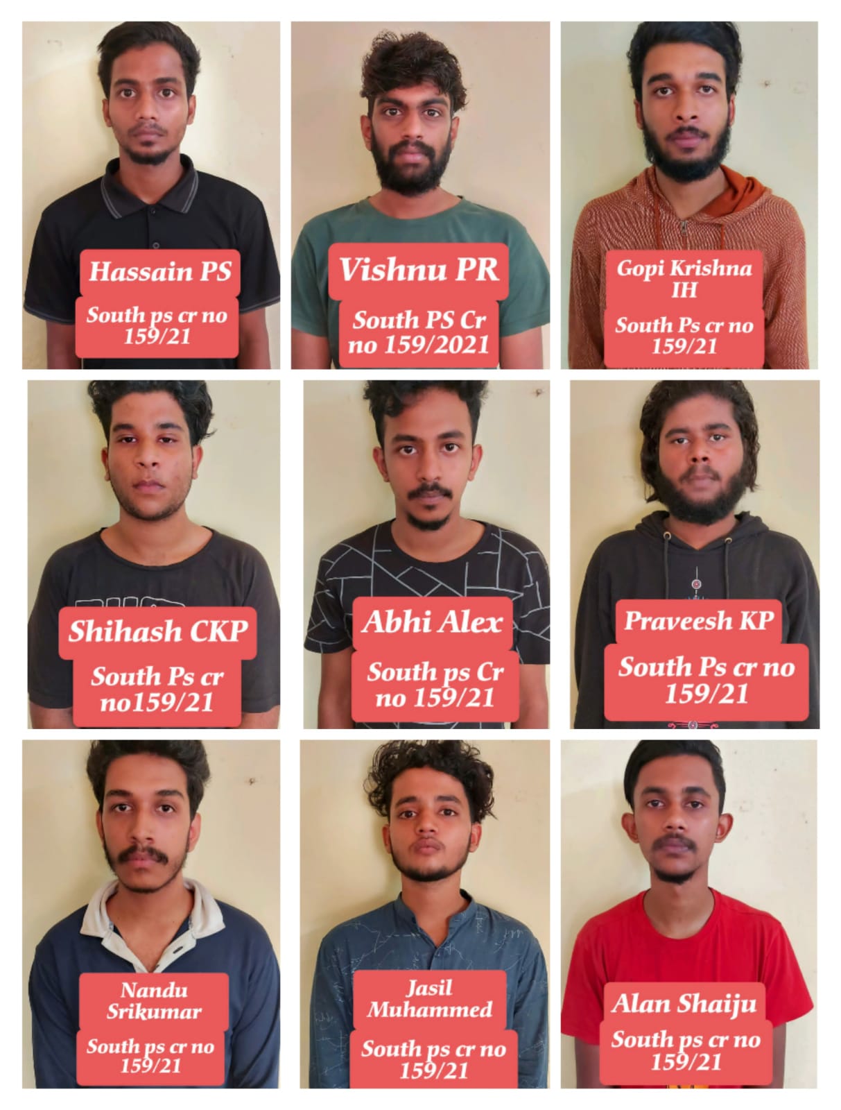 ಬಂಧಿತರನ್ನು ಅಭಿ, ಅಲೆಕ್ಸ್, ನಂದು, ಶ್ರೀಕುಮಾರ್, ಶಿಹಾಸ್, ಪ್ರವೀಶ್, ಗೋಪಿಕೃಷ್ಣ, ಹಸನ್, ವಿಷ್ಣು, ಜಾಸಿಲ್, ಅಲೆನ್ ಎಂದು ಗುರುತಿಸಲಾಗಿದೆ. ಇವರನ್ನು ರೈಲ್ವೆ ನಿಲ್ದಾಣ ಬಳಿಯಿಂದ ಬಂಧಿಸಲಾಗಿದೆ. ಈ ಪೈಕಿ 7 ಮಂದಿ ಗಾಂಜಾ ಸೇವನೆ ಮಾಡಿದ್ದು, ವೈದ್ಯಕೀಯ ಪರೀಕ್ಷೆಗೊಳಪಡಿಸಿದಾಗ ದೃಢಪಟ್ಟಿದೆ. ಬಂಧಿತರಲ್ಲಿ ಓರ್ವ ಸಂತ್ರಸ್ತ ವಿದ್ಯಾರ್ಥಿಗಳ ಸೀನಿಯರ್ ಆಗಿದ್ದು, ಏಳು ಮಂದಿ ಬಲ್ಮಠದ ನಸಿರ್ಂಗ್ ಕಾಲೇಜಿನ ಕೇರಳ ಮೂಲದ ವಿದ್ಯಾರ್ಥಿಗಳಾಗಿದ್ದಾರೆ.