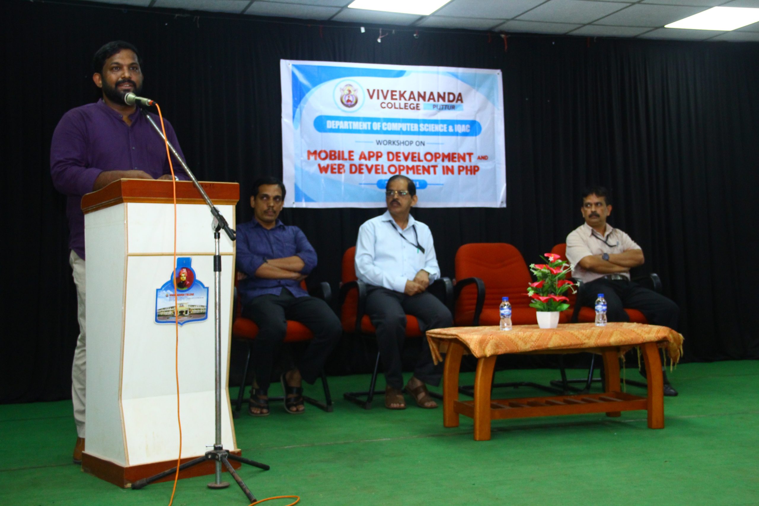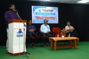 ವಿವೇಕಾನಂದ ಮಹಾವಿದ್ಯಾಲಯದ ಕಂಪ್ಯೂಟರ್ ಸೈನ್ಸ್ ವಿಭಾಗ ಮತ್ತು ಐಟಿ ಕ್ಲಬ್ ಹಾಗೂ ಐಕ್ಯೂಎಸಿ ಘಟಕ ಇದರ ಆಶ್ರಯದಲ್ಲಿ ಆಯೋಜಿಸಿಲಾದ ಮೊಬೈಲ್ ಅಪ್ಲಿಕೇಶನ್ ಡೆವಲಪ್ ಮೆಂಟ್ ಪಿ ಹೆಚ್ ಪಿ ವೆಬ್ ಡೆವಲಪ್ ಮೆಂಟ್ ಕುರಿತಾಗಿ ನಡೆದ ಒಂದು ದಿನದ ಕಾರ್ಯಾಗಾರದಲ್ಲಿ ಮುಖ್ಯ ಸಂಪನ್ಮೂಲ ವ್ಯಕ್ತಿಯಾಗಿ ಭಾಗವಹಿಸಿ ಮಾತನಾಡಿದರು. ಇದನ್ನೂ ಓದಿ : ಭಾರತೀಯ ಜನತಾ ಪಾರ್ಟಿ ಬೆಳ್ತಂಗಡಿ ಮಂಡಲದಿಂದ ಗುರುವಾಯನಕೆರೆಯಲ್ಲಿ ವಿಧಾನ ಪರಿಷತ್ ಚುನಾವಣಾ ಪ್ರಚಾರ ಸಭೆ – ಸಚಿವ ಕೋಟ ಶ್ರೀನಿವಾಸ ಪೂಜಾರಿ, ಎಸ್ ಅಂಗಾರ ಭಾಗಿ –ಕಹಳೆ ನ್ಯೂಸ್