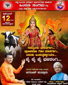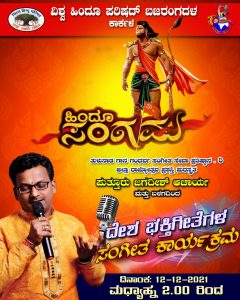 ವಿಶ್ವ ಹಿಂದೂ ಪರಿಷದ್ ಬಜರಂಗದಳ ಕಾರ್ಕಳ ಹಿಂದೂ ಸಂಗಮದಲ್ಲಿ ಎಲ್ಲಾ ದೇಶ ಭಕ್ತ ಬಜರಂಗಿಗಳಿಗಾಗಿ ಡಿ12 ರಂದು ಮಧ್ಯಾಹ್ನ 2 ಗಂಟೆಯಿಂದ ದೇಶ ಭಕ್ತಿಗೀತೆಗಳ ಸಂಗೀತ ಕಾರ್ಯಕ್ರಮ ನೆರವೇರಲಿದೆ.