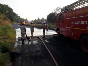 ಲಾರಿ ಪಲ್ಟಿಯಾದ ಘಟನೆಯಿಂದ ಲಾರಿಯ ಡಿಸೇಲ್ ಟ್ಯಾಂಕ್ ಗ್ ಹಾನಿಯಾಗಿದ್ದು ರಸ್ತೆಯ ತುಂಬಾ ಹರಿದಿತ್ತು.ಇದರಿಂದ ವಾಹನಗಳ ಅಪಘಾತವಾಗುವ ಸಾಧ್ಯತೆಗಳು ಹೆಚ್ಚು ಇದೆ ಎಂದು ಮನಗಂಡ ಎಸ್.ಐ.ರಾಜೇಶ್ ಅವರು ಅಗ್ನಿಶಾಮಕ ದಳದವರನ್ನು ಕರೆಸಿ ನೀರು ಹಾಯಿಸಿ ರಸ್ತೆಯಲ್ಲಿ ಹರಿದ್ದಿದ್ದ ಡಿಸೇಲ್ ತೆರವು ಮಾಡಿಸಿದ್ದಾರೆ.
