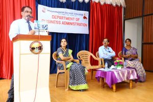 ಮುಖ್ಯ ಅತಿಥಿಯಾಗಿ ಭಾಗವಹಿಸಿದ್ದ ಕಾಲೇಜಿನ ಸ್ನಾತಕೋತ್ತರ ವಾಣಿಜ್ಯ ಶಾಸ್ತ್ರ ವಿಭಾಗದ ಉಪನ್ಯಾಸಕಿ ಡಾ.ವಿಜಯ ಸರಸ್ವತಿ ಮಾತನಾಡಿ, ಕಾರ್ಪೊರೇಟ್ ಯುಗದಲ್ಲಿ ಒಬ್ಬ ವಿದ್ಯಾರ್ಥಿ ವೃತ್ತಿಪರ ಕೌಶಲ್ಯದ ಜೊತೆಗೆ, ಭಾμÉ ಹಾಗೂ ಬರೆವಣಿಗೆಯಲ್ಲಿಯೂ ಮುಂದಿರಬೇಕು. ವಾದ ಹಾಗೂ ಚರ್ಚೆ ಇವೆರಡೂ ಶಬ್ದಗಳಿಗೆ ಬೇರೆ ಬೇರೆ ಅರ್ಥ ಇದೆ. ವಾದ ಪದವು ಯಾರು ಸರಿ ಎಂದರೆ, ಚರ್ಚೆ ಎಂಬುದು ಯಾವುದು ಸರಿ ಎಂದು ಕೊನೆಗೊಳ್ಳುತ್ತದೆ. ಈ ರೀತಿಯಾಗಿ ಪದಗಳ ಬಳಕೆಯ ಅರಿವು ಹೊಂದಬೇಕು ಎಂದು ಅಭಿಪ್ರಾಯಪಟ್ಟರು. ಕಾರ್ಯಕ್ರಮದಲ್ಲಿ ವ್ಯವಹಾರ ಆಡಳಿತ ವಿಭಾಗದ ಉಪನ್ಯಾಸಕರಾದ ದೀಪಿಕಾ ಎಸ್. ಹಾಗೂ ಕಿಶನ್ ಎನ್. ರಾವ್ ಉಪಸ್ಥಿತರಿದ್ದರು. ಪ್ರಥಮ ಬಿ.ಬಿ.ಎ ವಿದ್ಯಾರ್ಥಿಗಳಾದ ಶ್ರೀನಿಧಿ ಹಾಗೂ ಸಾಹಿತ್ಯ ಪ್ರಾರ್ಥಿಸಿದರು. ವಿಭಾಗದ ಮುಖ್ಯಸ್ಥೆ ರೇಖಾ.ಪಿ ಸ್ವಾಗತಿಸಿ , ಉಪನ್ಯಾಸಕಿ ಅನ್ನಪೂರ್ಣ ಪಿ.ಜಿ. ವಂದಿಸಿದರು. ತೃತೀಯ ಬಿ.ಬಿ.ಎ. ವಿದ್ಯಾರ್ಥಿನಿ ವಿದ್ಯಾಶ್ರೀ ಟಿ. ಕಾರ್ಯಕ್ರಮವನ್ನು ನಿರೂಪಿಸಿದರು.