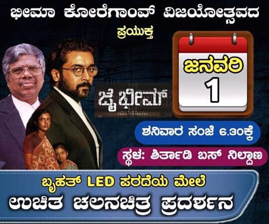 ಶಿರ್ತಾಡಿ: ಜನವರಿ 01 ಎಂದರೆ ಹೊಸ ವರ್ಷ ಸಂಭ್ರಮ, ಇದೇ ಸಂಭ್ರಮದ ನಡುವೆ ಥಟ್ಟನೆ ನೆನಪಾಗೋದು ಭೀಮಾ ಕೋರೆಂಗಾವ್ ವಿಜಯೋತ್ಸವ. ಕೇವಲ 500 ಮಹರ್ ಸೈನಿಕರು 28,000 ಸಾವಿರ ಪೇಶ್ವೆಗಳನ್ನು ಯುದ್ದದಲ್ಲಿ ಮಣಿಸಿ ಇತಿಹಾಸ ನಿರ್ಮಿಸಿದ ದಿನ ಇಂದು. ಈ ಇತಿಹಾಸವನ್ನು ನೆನಪಿಸಿಕೊಳ್ಳುತ್ತ , ಚಿತ್ರರಂಗದಲ್ಲಿ ಮತ್ತೊಂದು ದಾಖಲೆ ಬರೆದ ಜೈಭೀಮ್ ಚಲನಚಿತ್ರವನ್ನು ಶಿರ್ತಾಡಿಯಲ್ಲಿ ಉಚಿತವಾಗಿ ಪ್ರದರ್ಶಿಸಲು ನಿರ್ಧರಿಸಲಾಗಿದೆ.