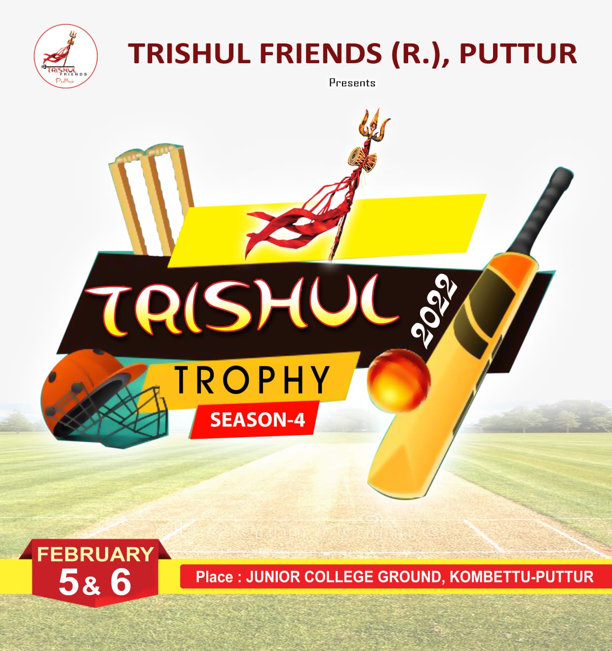 ಯಾವುದೇ ಜಾತಿ-ಧರ್ಮ-ಪಕ್ಷಕ್ಕೆ ಸೀಮಿತಗೊಳ್ಳದೆ ಉತ್ಸಾಹಿ ಯುವಕರನ್ನೊಳಗೊಂಡ ಈ ಹಿಂದೆ ಒಂದು ವರ್ಷ ಕಬಡ್ಡಿ ಹಾಗೂ ಎರಡು ವರ್ಷ ಕ್ರಿಕೇಟ್ ಪಂದ್ಯಾಟವನ್ನ ಆಯೋಜಿಸಿತ್ತು ಈ ಭಾಗಿ ಮತ್ತೆ ಕ್ರಿಕೇಟ್ ಪಂದ್ಯಾಟವನ್ನ ಆಯೋಜನೆ ಮಾಡಲಾಗಿದೆ. ಫೆಬ್ರವರಿ 5 ಮತ್ತು 6ರಂದು ಪುತ್ತೂರಿನ ಕೊಂಬೆಟ್ಟು ಜ್ಯೂನಿಯರ್ ಕಾಲೇಜು ಮೈದಾನದಲ್ಲಿ ತ್ರಿಶೂಲ್ ಫ್ರೆಂಡ್ಸ್ ಟ್ರೋಫಿ 2022, ಸೀಸನ್-4 ಕ್ರಿಕೇಟ್ ಪಂದ್ಯಾಟ ನಡೆಯಲಿದೆ.