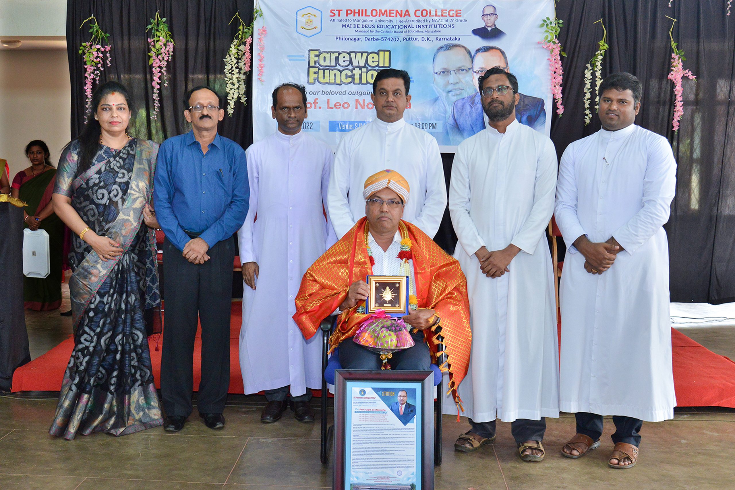 ಪುತ್ತೂರು : ಕಳೆದ ಹನ್ನೆರಡು ವರ್ಷಗಳಿಂದ ಸಂತ ಫಿಲೋಮಿನಾ ಕಾಲೇಜಿನ ಪ್ರಾಂಶುಪಾಲರಾಗಿದ್ದ ಪ್ರೊ. ಲಿಯೋ ನೊರೊನ್ಹಾ ಅವರಿಗೆ ಬಿಳ್ಕೊಡುಗೆ ಮತ್ತು ಸನ್ಮಾನ ಸಮಾರಂಭವನ್ನು ಕಾಲೇಜಿನ ಶಿಕ್ಷಕ ಮತ್ತು ಶಿಕ್ಷಕೇತರ ಸಂಘದಿಂದ ಇತ್ತೀಚೆಗೆ ಆಯೋಜಿಸಲಾಗಿತ್ತು. “ನನ್ನ ವೃತ್ತಿ ಜೀವನನದ ಬಹುಭಾಗವನ್ನು ಸಂತಫಿಲೋಮಿನಾ ಕಾಲೇಜಿನಲ್ಲಿ ಕಳೆದಿದ್ದೇನೆ” ಎಂದು ಸನ್ಮಾನ ಸ್ವೀಕರಿಸುತ್ತ ಹೇಳಿದ ಪ್ರೊ.ಲಿಯೋ ನೊರೊನ್ಹಾ ಕಾಲೇಜಿನಲ್ಲಿ ಕಳೆದ ದಿನಗಳನ್ನು ಸ್ಮರಿಸಿಕೊಂಡರು. “ ಇಂದು ಶಿಕ್ಷಣ ಕ್ಷೇತ್ರವು ತೀವ್ರ ಗತಿಯಲ್ಲಿ ಬದಲಾಗುತ್ತಿದೆ. ನೂತನ ಶಿಕ್ಷಣ ನೀತಿಯ ಅನುಷ್ಠಾನದಿಂದ ಉಂಟಾಗುವ ಬದಲಾವಣೆಗಳನ್ನು ಎದುರಿಸಲು ಶಿಕ್ಷಕರು ಸಿದ್ಧವಾಗಬೇಕಾದ ಅನಿವಾರ್ಯತೆ ಇದೆ” ಎಂದು ಎಚ್ಚರಿಸಿದರು.