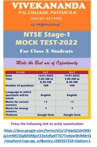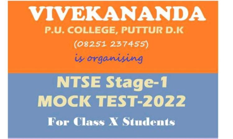 ಪುತ್ತೂರು: ಹತ್ತನೇ ತರಗತಿಯ ವಿದ್ಯಾರ್ಥಿಗಳನ್ನು ಗಮನದಲ್ಲಿರಿಸಿಕೊಂಡು ಪುತ್ತೂರಿನ ವಿವೇಕಾನಂದ ಪದವಿಪೂರ್ವ ಕಾಲೇಜಿನ ವತಿಯಿಂದ ಜನವರಿ 13 ಮತ್ತು 14 ರಂದು NTSC ಮಾದರಿ ಪರೀಕ್ಷೆಯೊಂದನ್ನು ಆಯೋಜಿಸಲಾಗಿದೆ.