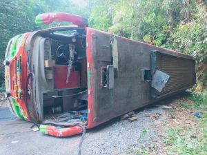 ತಿರುವಿನ ಬಳಿ ಚಾಲಕನ ನಿಯಂತ್ರಣ ತಪ್ಪಿ ಬಸ್ ಉರುಳಿ ಬಿದ್ದ ಪರಿಣಾಮ ಹಲವರು ಗಾಯಗೊಂಡಿದ್ದು, ಕುಂದಾಪುರ ಸರಕಾರಿ ಆಸ್ಪತ್ರಗೆ ದಾಖಲಿಸಲಾಗಿದೆ. ಘಟನಾ ಸ್ಥಳಕ್ಕೆ ಕೊಲ್ಲೂರು ಪೋಲಿಸರು ಭೇಟಿ ನೀಡಿದ್ದು, ಈ ಬಗ್ಗೆ ಕೊಲ್ಲೂರು ಠಾಣೆಯಲ್ಲಿ ಪ್ರಕರಣ ದಾಖಲಾಗಿದೆ.