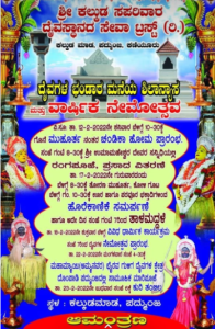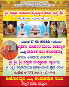ಇನ್ನು ಫೆ. 17ರಂದು ದೈವಗಳ ಭಂಡಾರದ ಮನೆಯ ಶಿಲಾನ್ಯಾಸ ಕಾರ್ಯಕ್ರಮ ಹಾಗೂ ಧಾರ್ಮಿಕ ಸಭಾ ಕಾರ್ಯಕ್ರಮಗಳು ನಡೆಯಲಿದ್ದು, ಧಾರ್ಮಿಕ ಸಭಾ ಕಾರ್ಯಕ್ರಮದಲ್ಲಿ ಕರಿಂಜೆ ಶ್ರೀ ಲಕ್ಷ್ಮೀ ಸತ್ಯನಾರಾಯಣ ವೀರಾಂಜನೇಯ ಕ್ಷೇತ್ರದ ಶ್ರೀ ಶ್ರೀ ಶ್ರೀ ಸದ್ಗುರು ಮುಕ್ತಾನಂದ ಸ್ವಾಮಿಗಳು ಆಶೀರ್ವಚನ ನೀಡಲಿದ್ದಾರೆ.