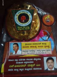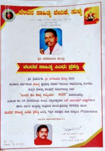 ರಾಜ್ಯಮಟ್ಟದ ಚಂದನ ಕವಿಗೋಷ್ಠಿ, ಮೂರು ಕೃತಿಗಳ ಬಿಡುಗಡೆ, ಚಂದನ ಸೌರಭ ಪ್ರಶಸ್ತಿ, ಚಂದನ ಕವಿ ಕಾವ್ಯ ಗೋಷ್ಠಿ, ಸಾಧಕರಿಗೆ 2022 ನೇ ಸಾಲಿನ ವಿವಿಧ ಪ್ರಶಸ್ತಿಗಳ ಪ್ರಧಾನ ಸಮಾರಂಭದಲ್ಲಿ ಪುತ್ತೂರಿನ ವಿವೇಕಾನಂದ ಕಾಲೇಜಿನ ರಸಾಯನ ಶಾಸ್ತ್ರ ವಿಭಾಗದಲ್ಲಿ ಲ್ಯಾಬ್ ಸಹಾಯಕರು ಆಗಿರುವ ಶ್ರೀ ನಾರಾಯಣ ಕುಂಬ್ರ ರವರಿಗೆ ಕೆಲವಾರು ವರ್ಷಗಳಿಂದ ಸಾಹಿತ್ಯ ಕ್ಷೇತ್ರದಲ್ಲಿನ ಸಾಧನೆಯನ್ನು ಪರಿಗಣಿಸಿ ಸಾಹಿತ್ಯ ಸಿಂಧು ಪ್ರಶಸ್ತಿಯನ್ನು ಹಿರಿಯ ಸಾಹಿತಿಗಳು ಆದ ಶ್ರೀ ನಾರಾಯಣ ರೈ ಕುಕ್ಕುವಳ್ಳಿಯವರು ನೀಡಿ ಗೌರವಿಸಿದರು.